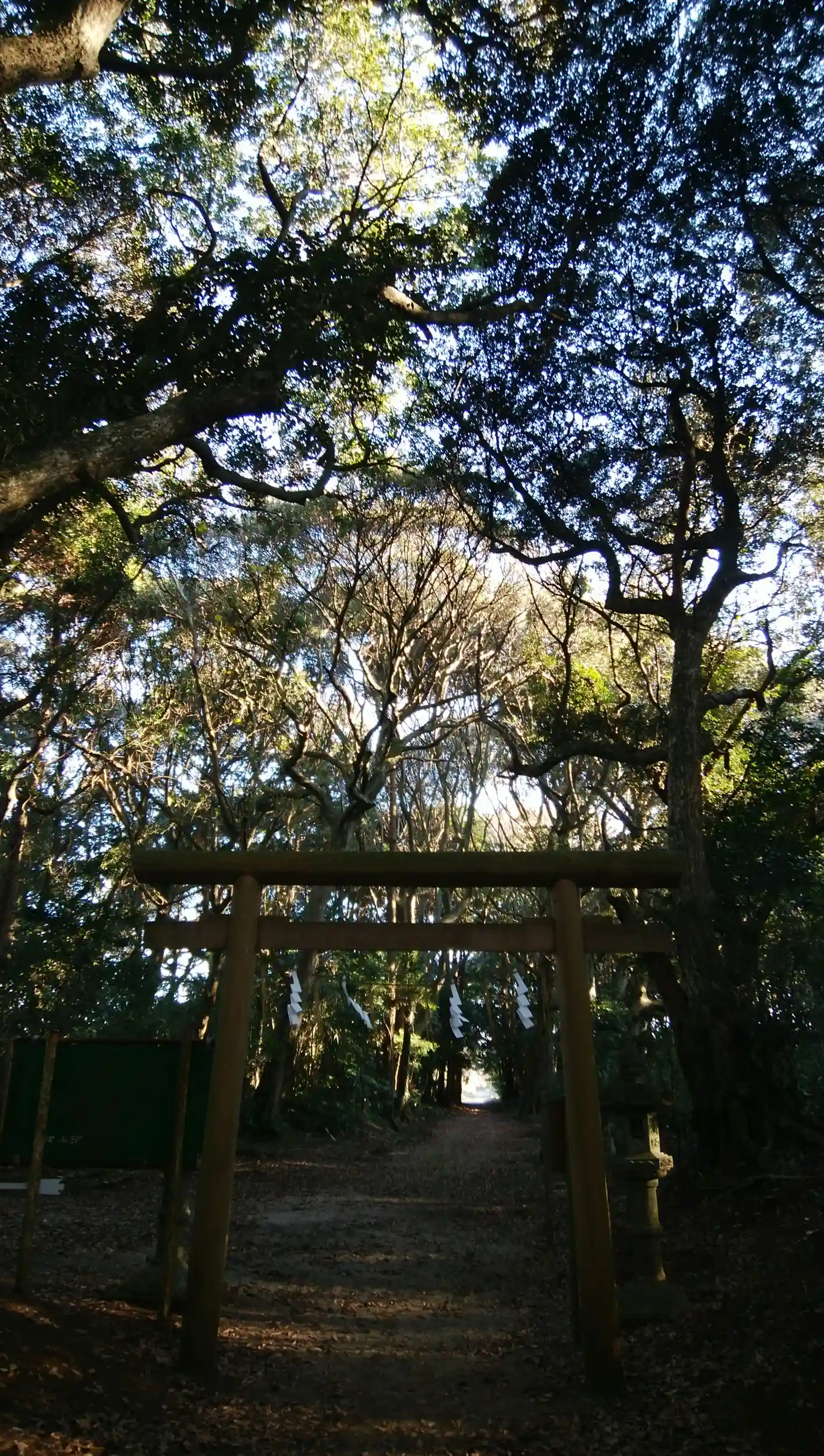 振り返ると、深い樹叢が広がり新年のすがすがしい空気を堪能できます。独り占めできてうれしいけど、誰も居ないなんてもったいないな~。