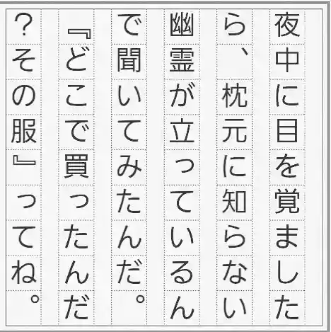 「貴方からいただいた服ですよ。日本橋三越行かれましたよね」