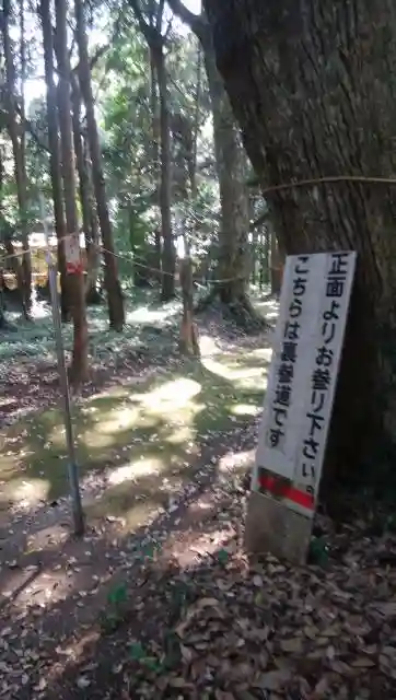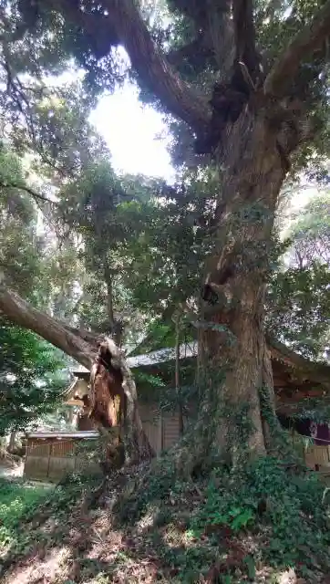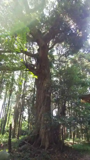 唐臼神社と同様、結界の縄が周囲を取り巻いています。後で聞いたところ、定期的に地元の方が掃除に来ているそうです。神事の時は、海側の集落からお供え物が届きます。これは、ここの樹叢が鹿島灘で操業する船乗りの目印になっていた事が理由とのことです。