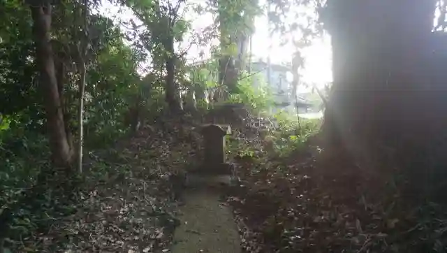 社殿から正面の谷です。近年の道路工事で鳥居の位置を変えたというよりは、元々正面に参道はなかったと思われます。この下に鹿島の大鳥居があったとする本もあるのですが、確認できませんでした。