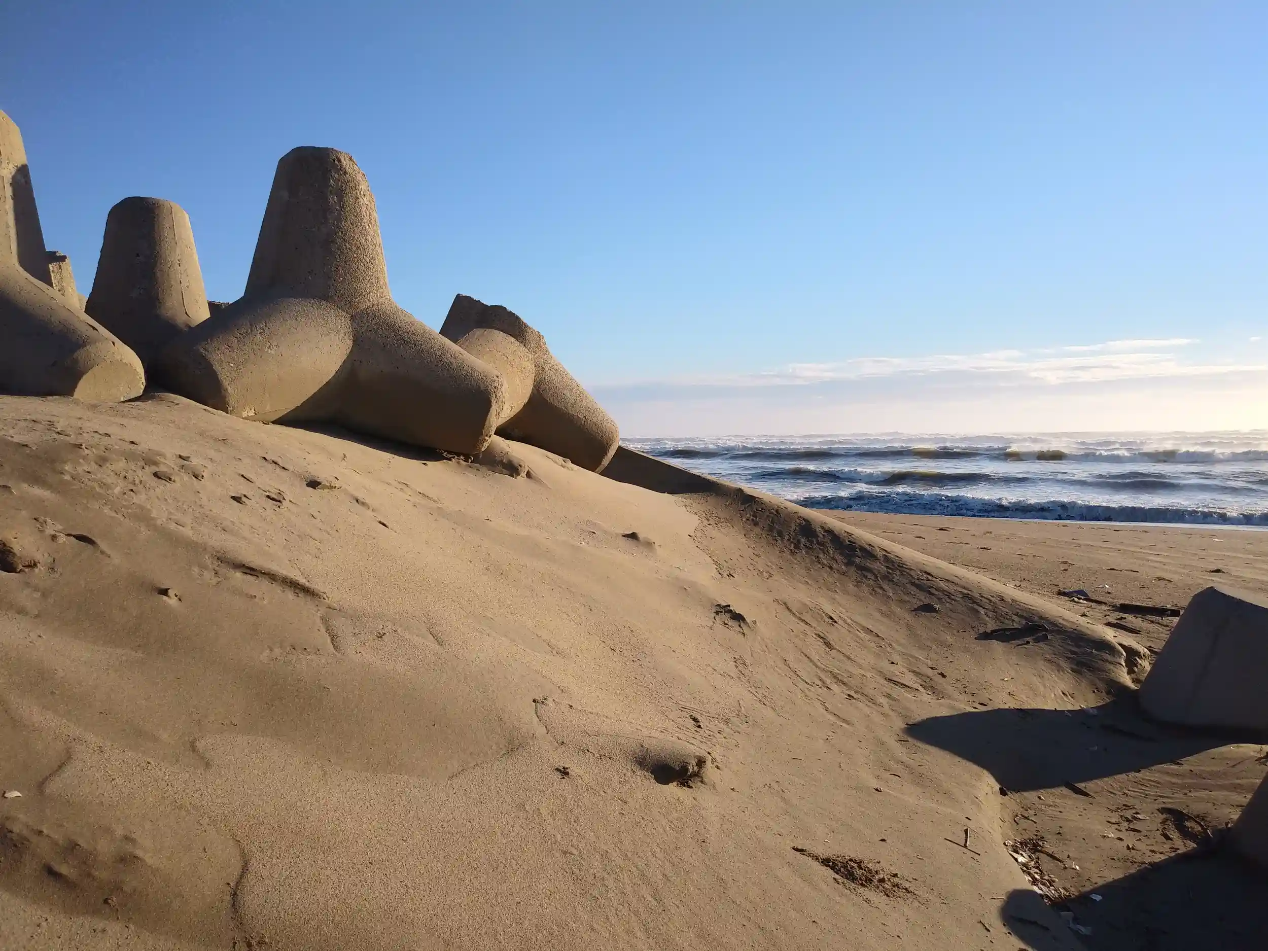砂浜沿いを車で走行していると、バリケードで、それ以上先に進めない箇所がありました。