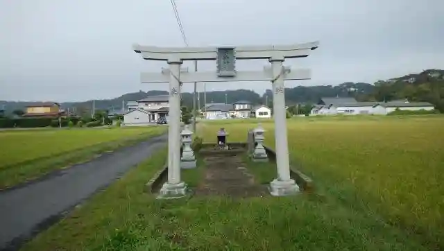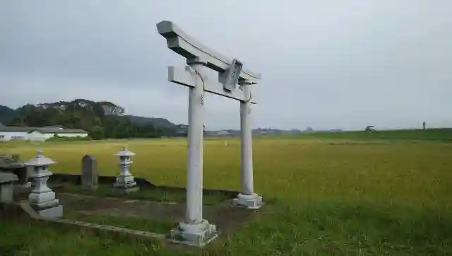 田んぼの中にぽつんと。鳥居と祠のシンプルなかたちです。