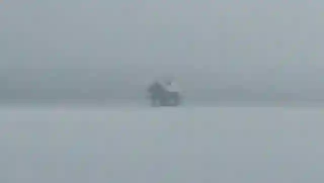 同じ時刻、水神社の堤防から北浦を望むとモヤがかかっていてこんな風景になっています。湖面にお社らしきものが見えます。