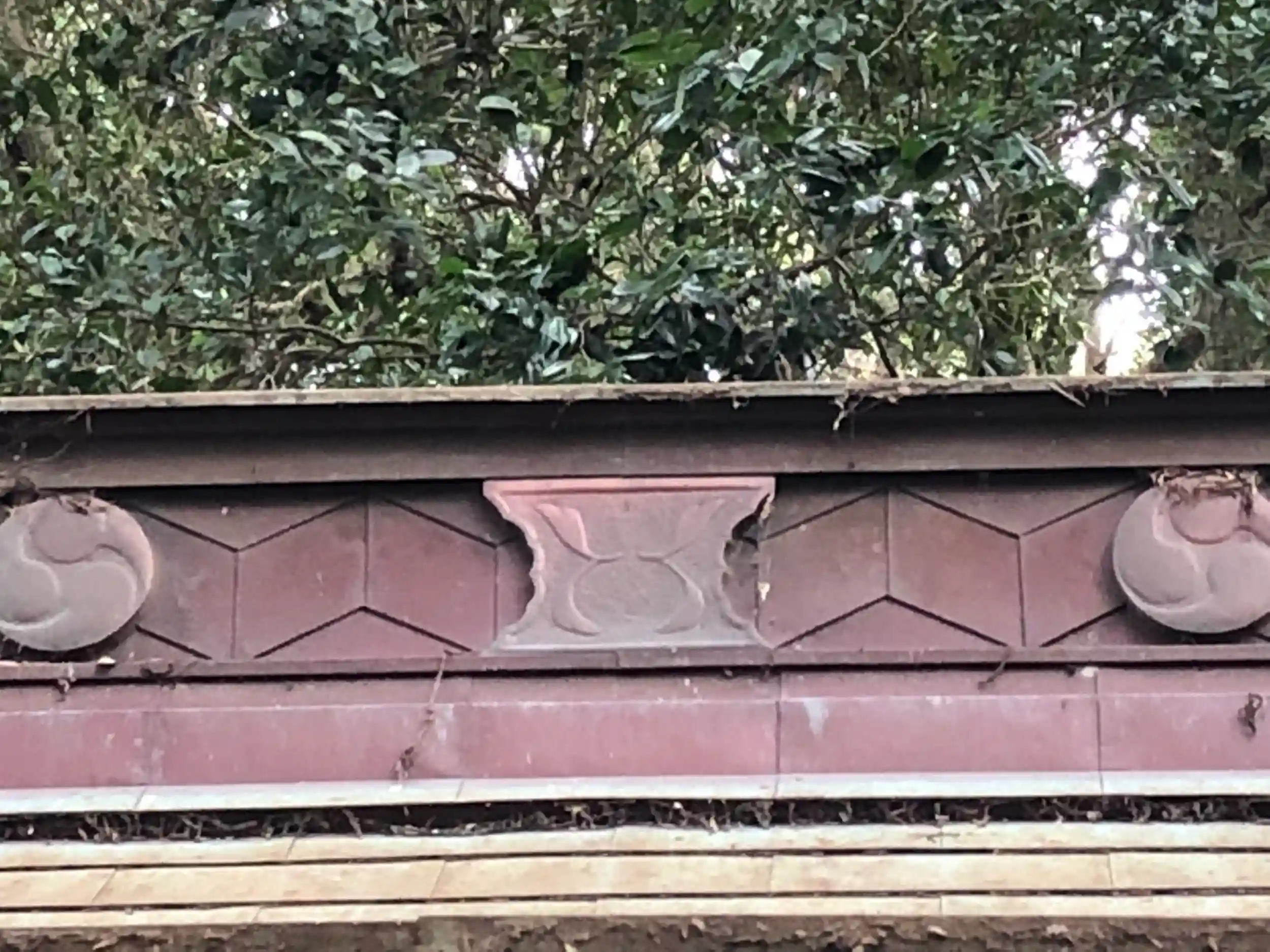 屋根にある模様をアップ。御神体がイザナギ、イザナミという事が判明したので、この模様も何か意味があるのかと思ってしまいます。