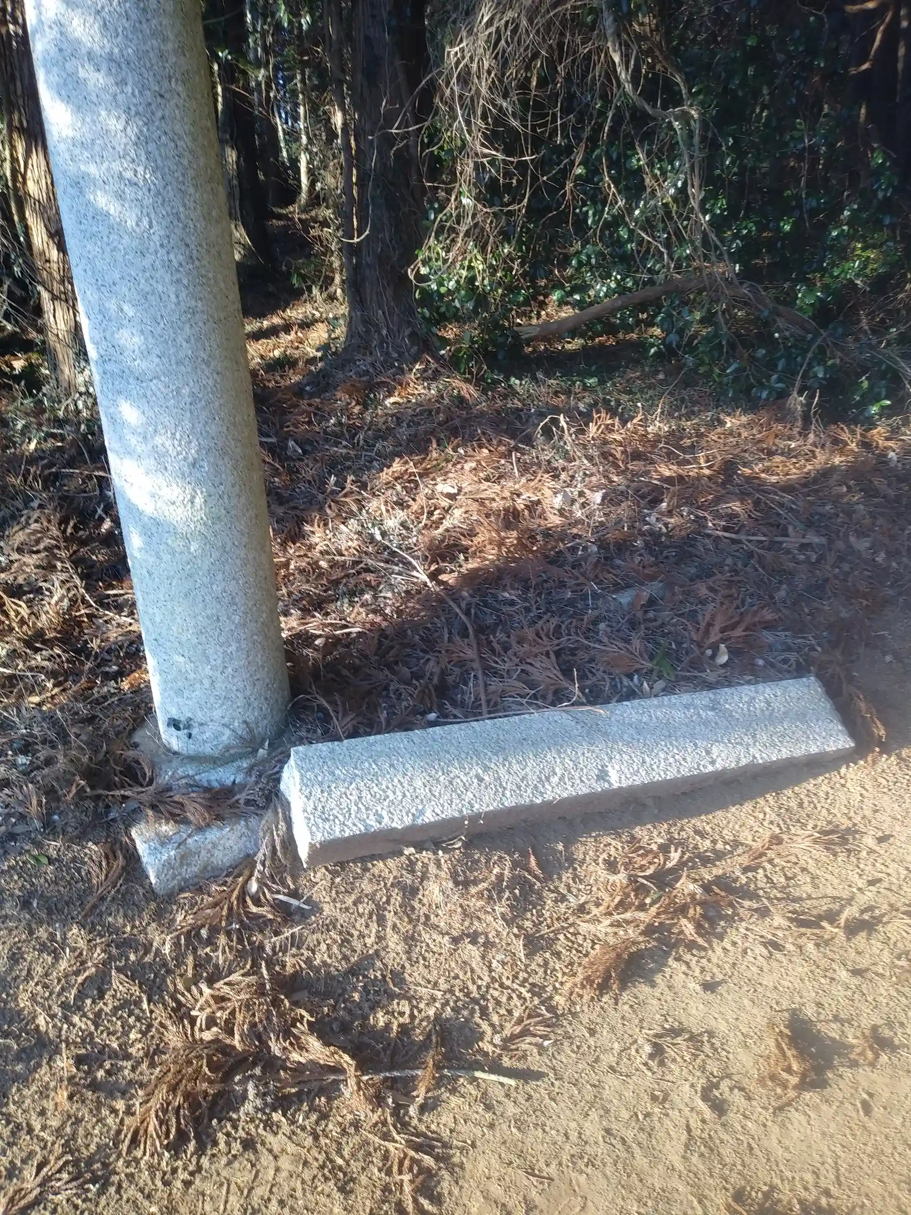 神社の横にものすごく存在感のある巨木がありました。周りの木と比較すると太さが際立ってます。植林の前からあった古木と思われます。