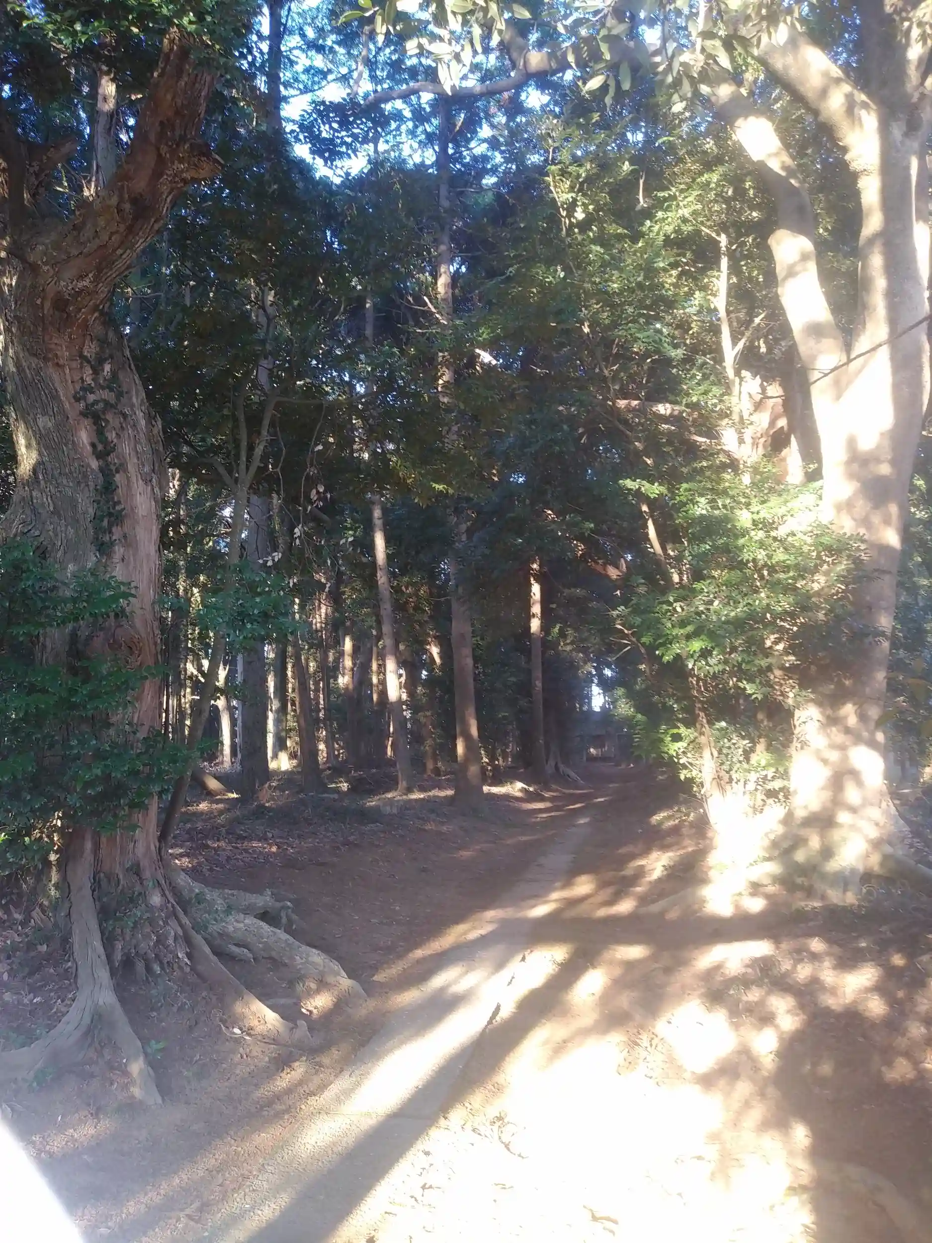 参道に朝日が差し込んでます。東向の神社なんですね。