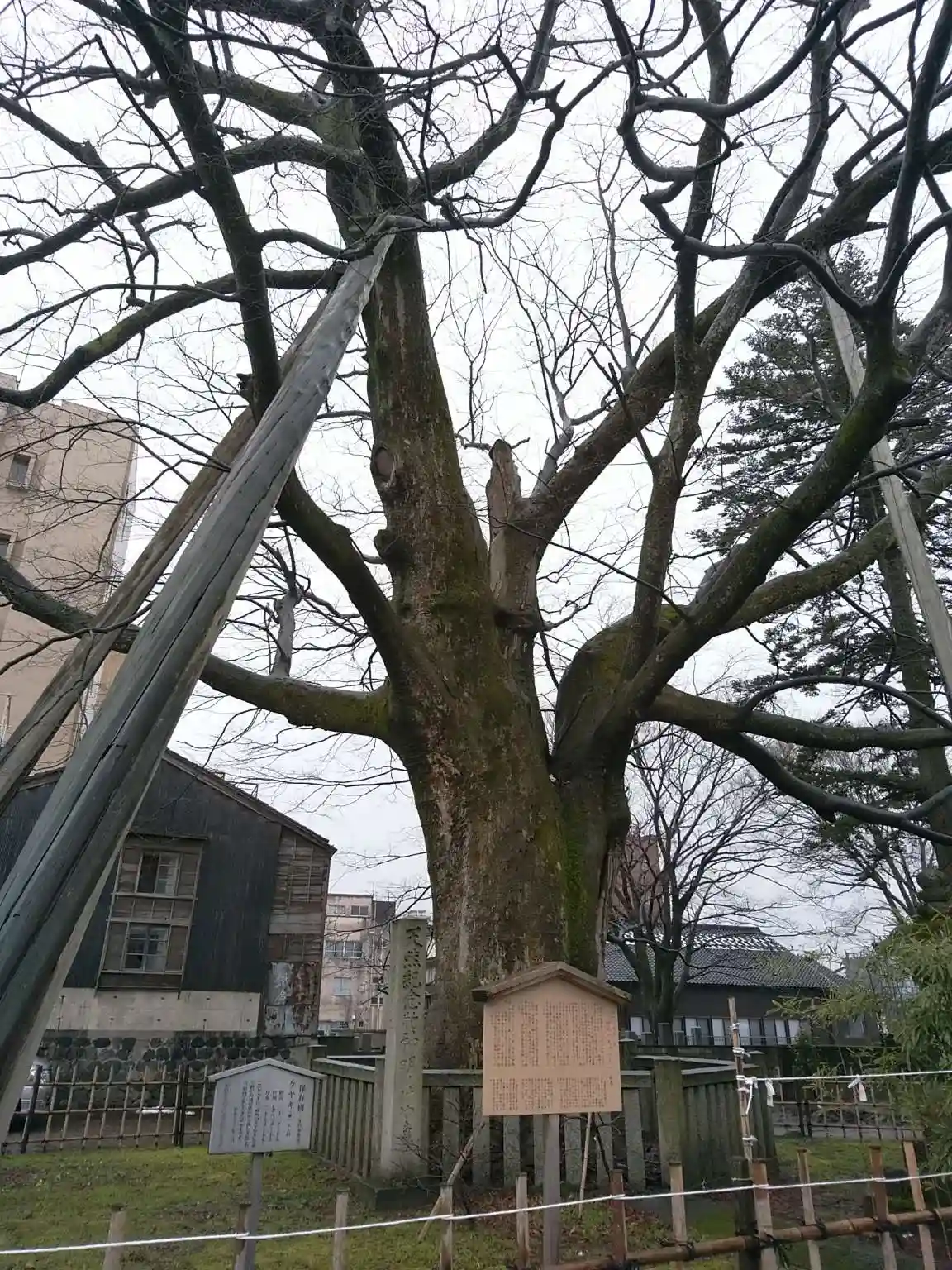 犀川大橋を渡ってすぐ。樹齢千年の欅に圧倒されます。
