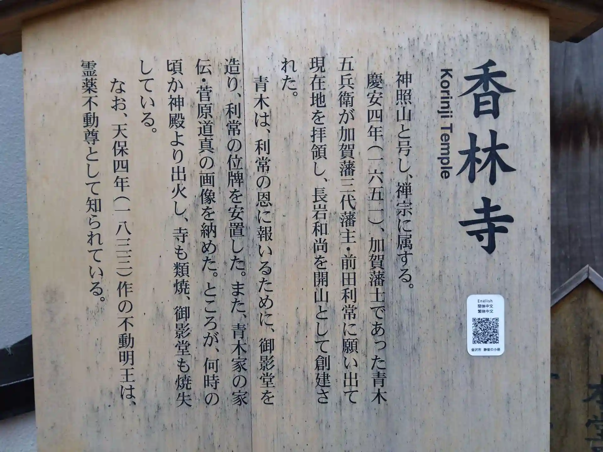 金沢市の寺町寺院群、禅宗の“願掛け寺”香林寺卍