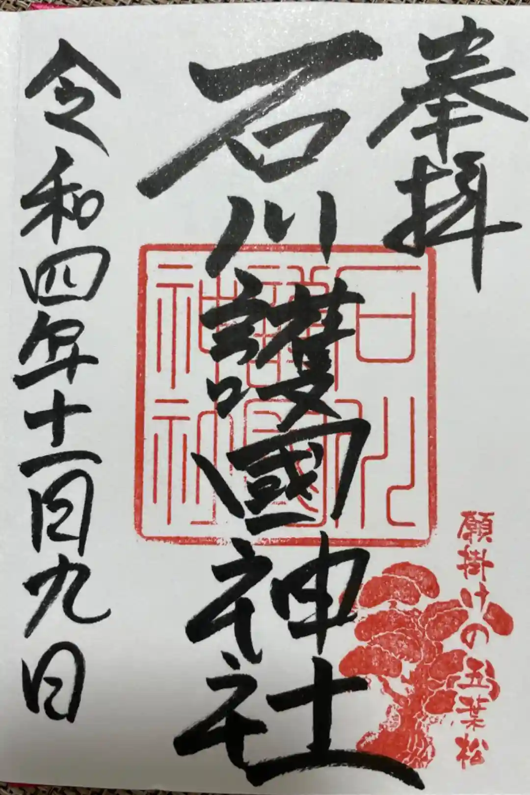 ![石川護國神社の御朱印]()