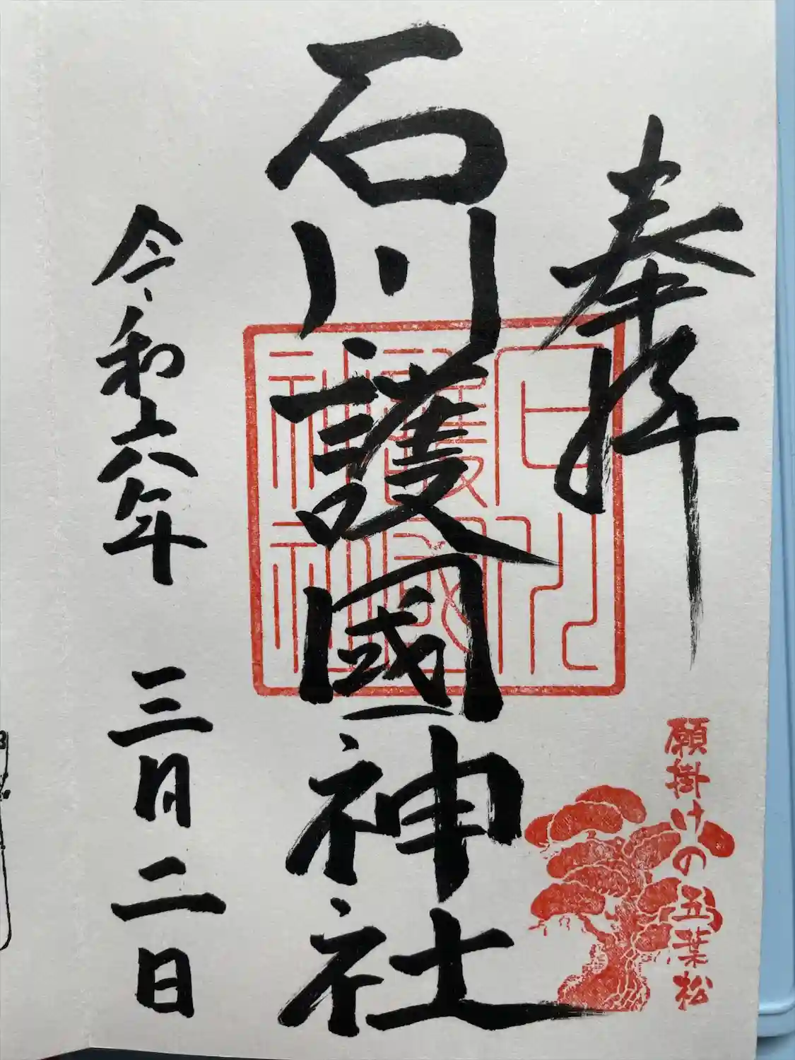 石川護国神社を参拝し御朱印をいただいてきました。