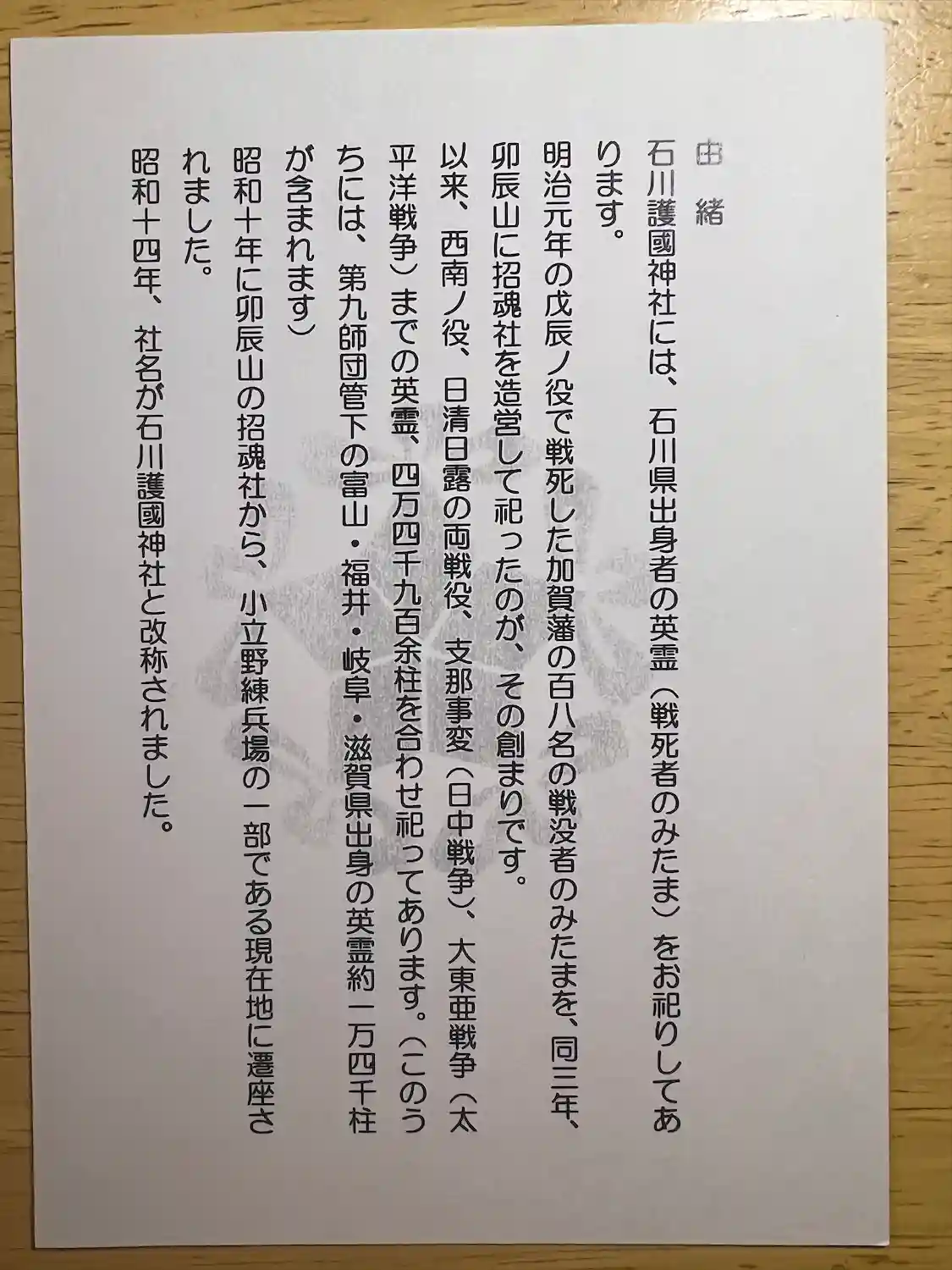 石川県出身の英霊をお祀りしておられる神社⛩