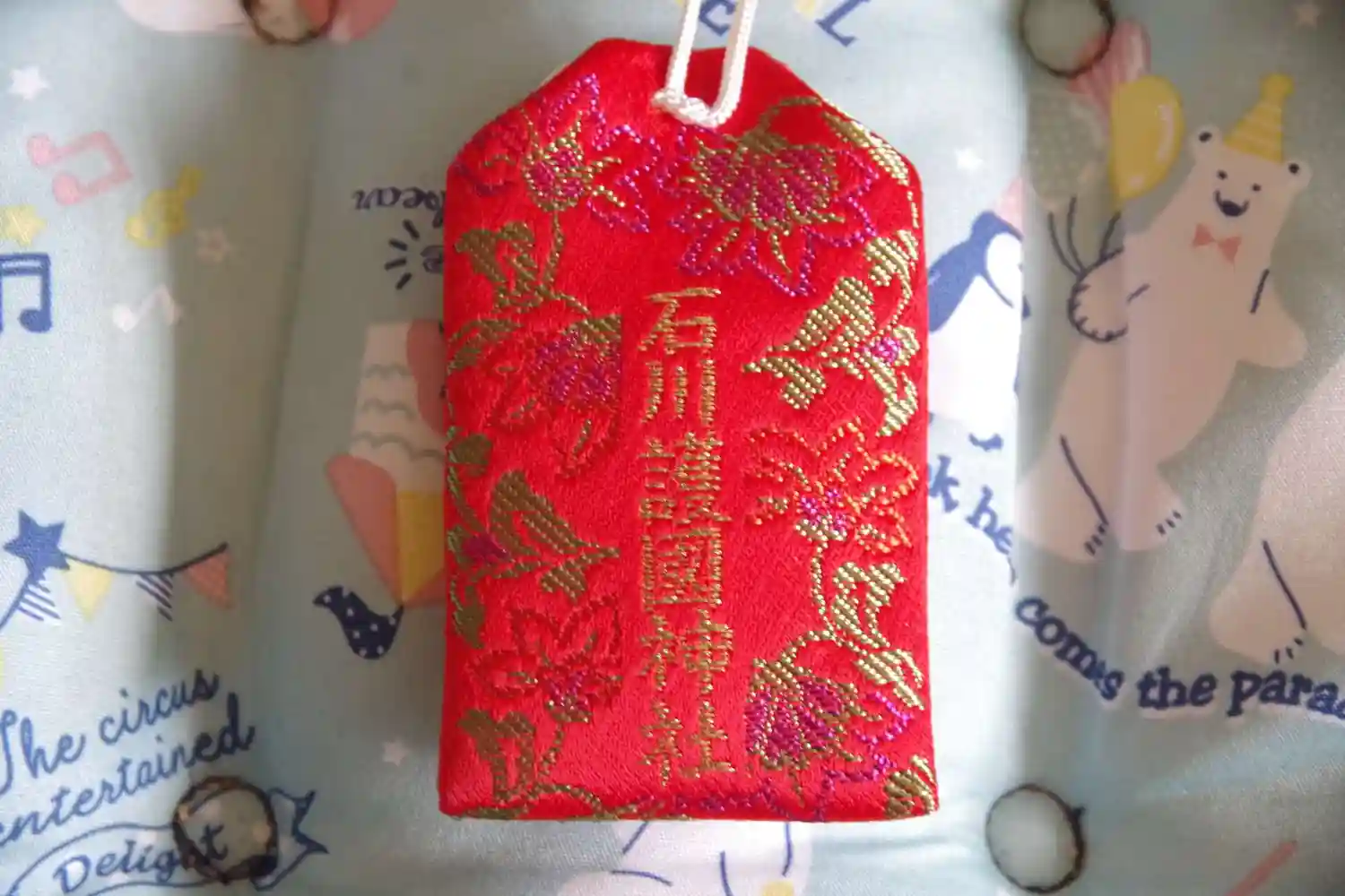 お守りと由緒書きです。