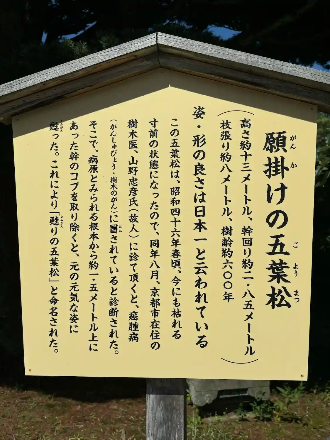 願掛けの五葉松 姿・形は日本一と云われているらしい