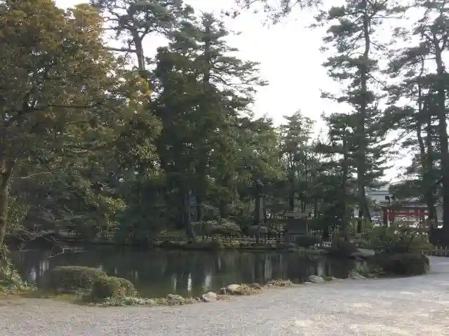 兼六園の中にある神社です。入場料を払わなくてもはいれるところにあります。金沢の地名の由来になった、金洗いの沢があります。ブラタモリでもいっていましたが、金沢は金が取れるんだそうです。そういえば汗をかいた時など、腕に金の粉がついていたことがありました。近くには池や梅林もあり、とても素敵な神社です。