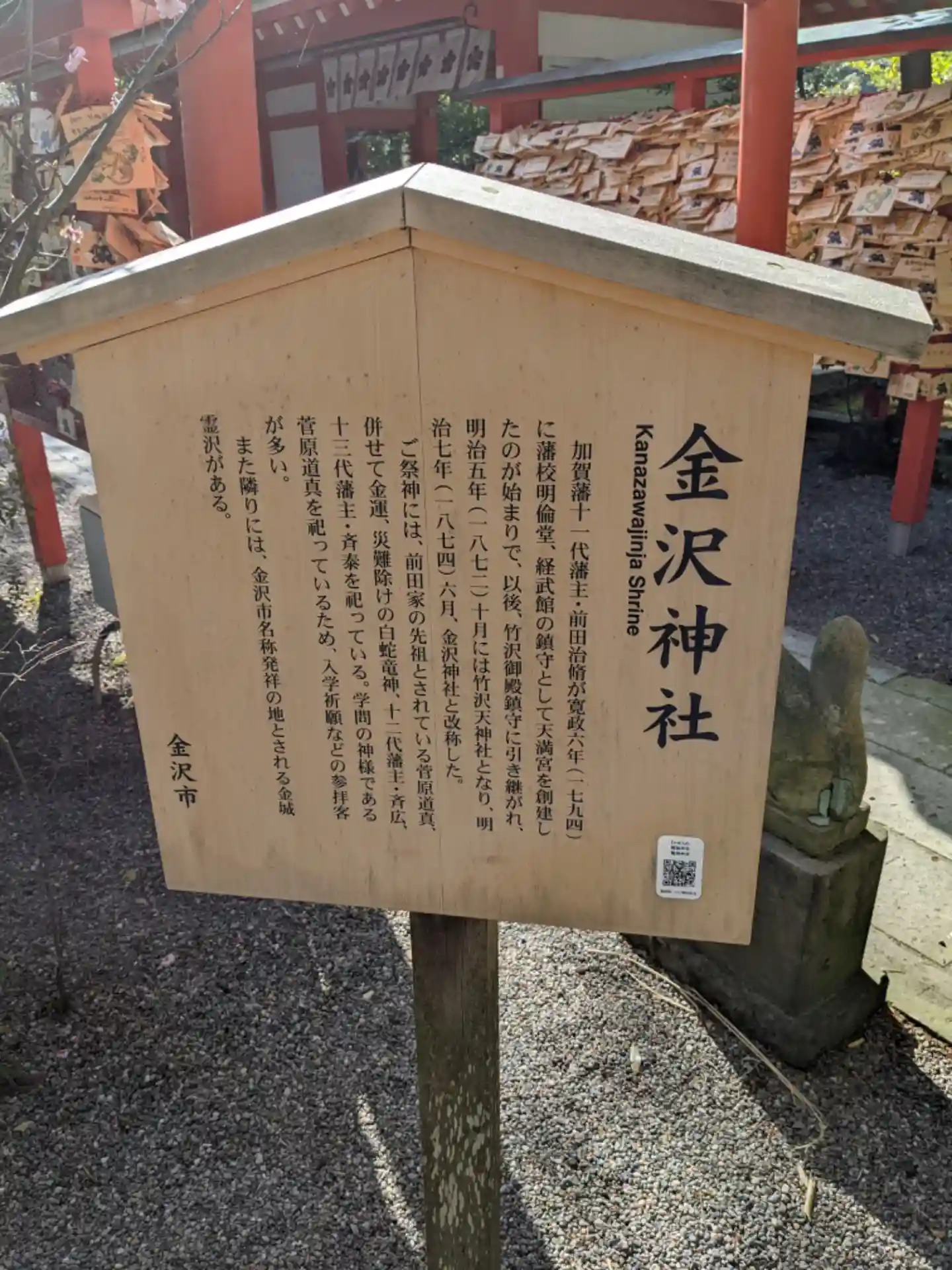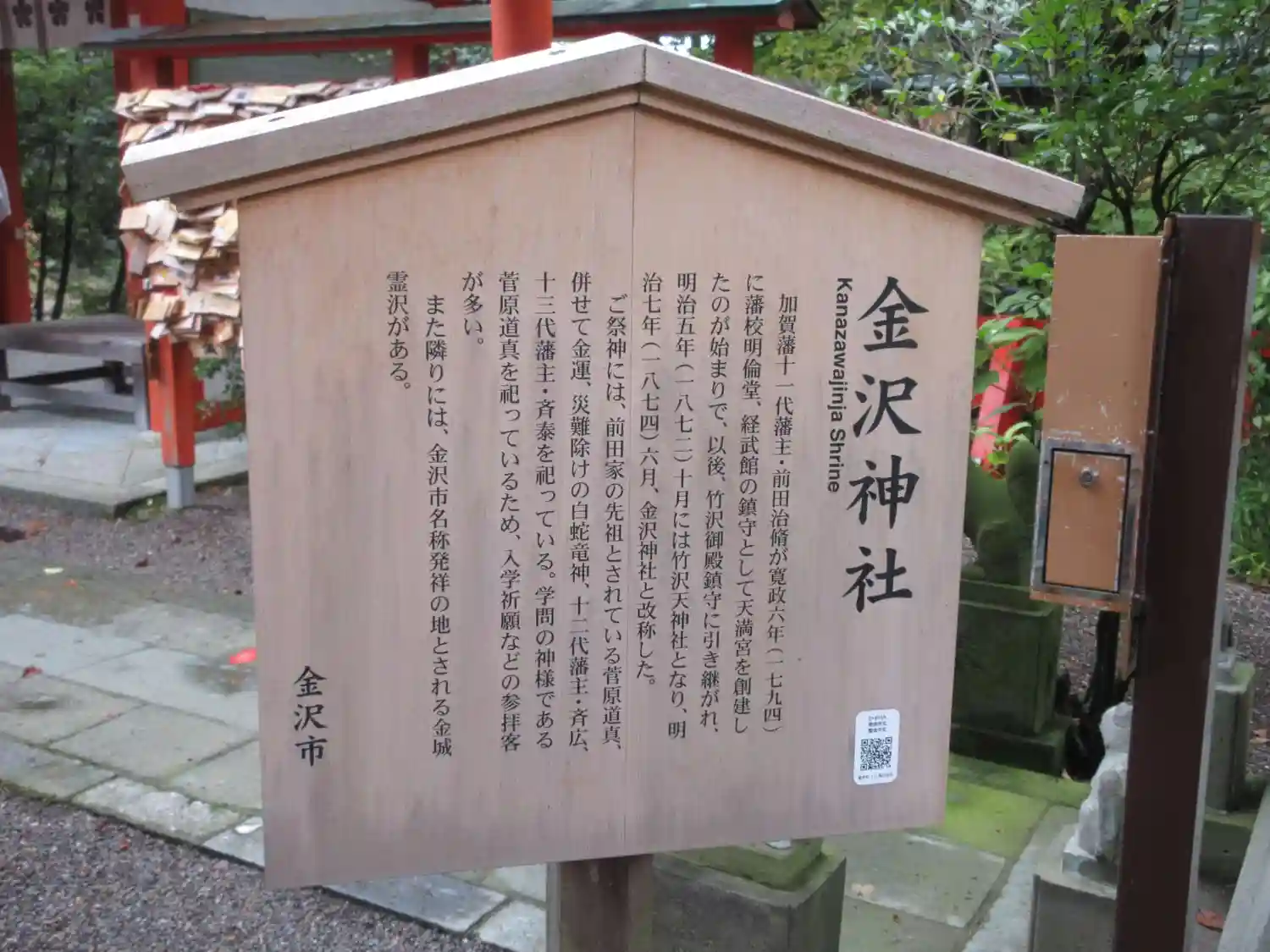 | ご祭神 | 《主》菅原道真,《配》白蛇龍神,大物主神,前田斎広,前田斎泰 | |
