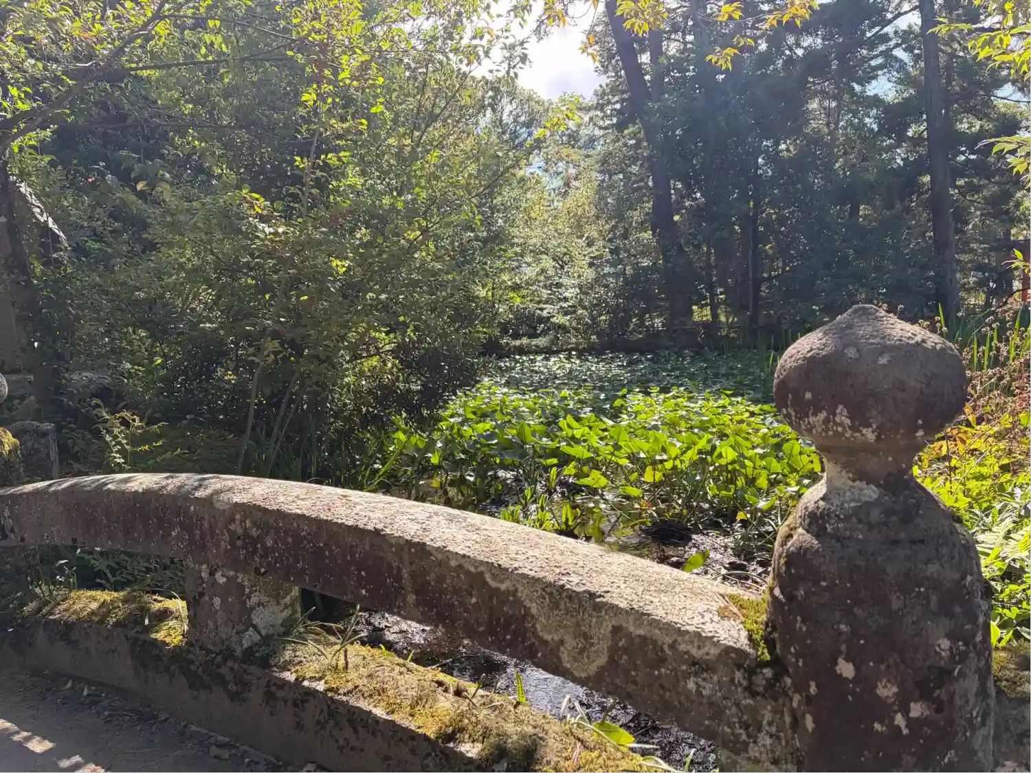 神社の前の池にも蓮の花が咲いていて、緑に囲まれたいい神社…