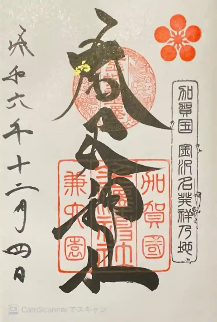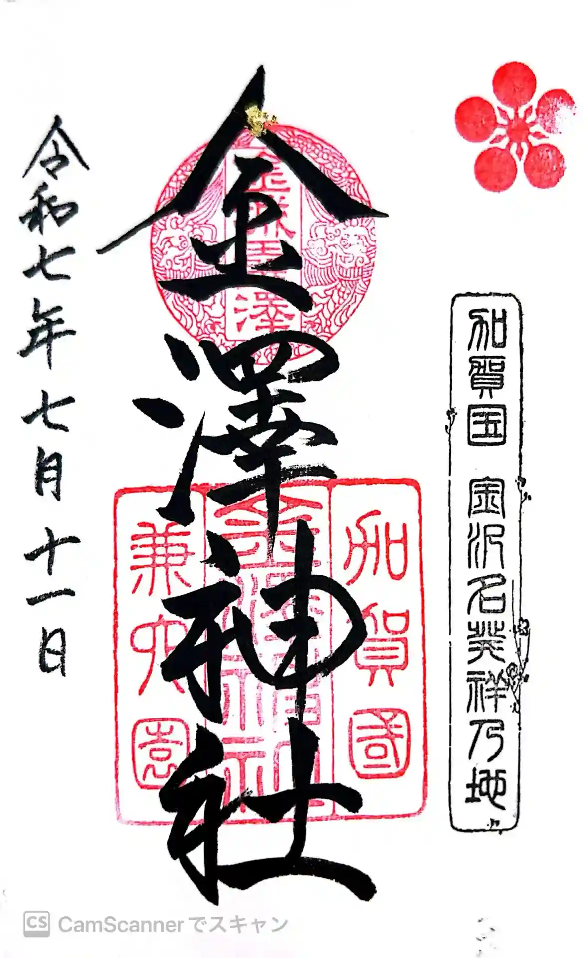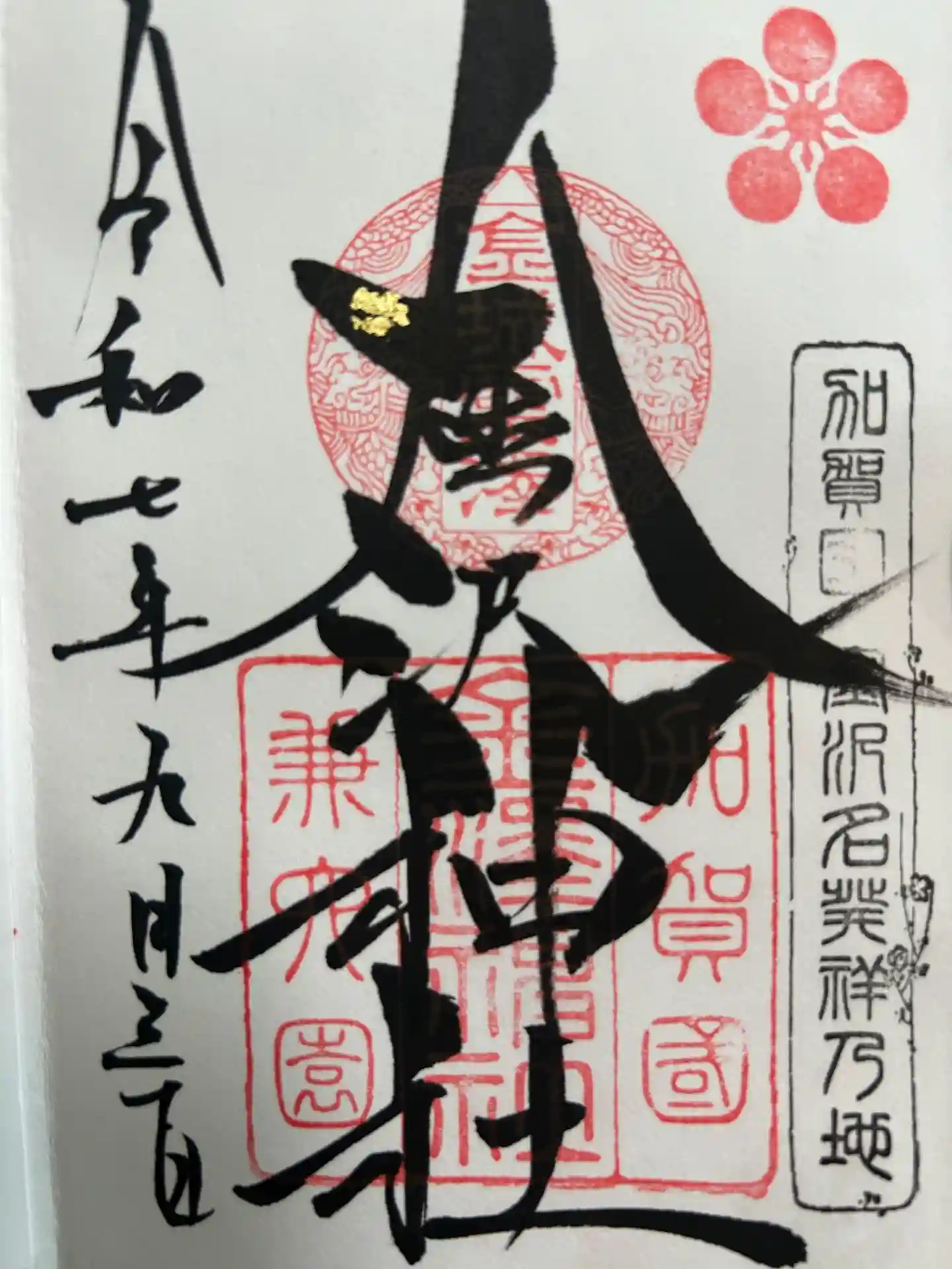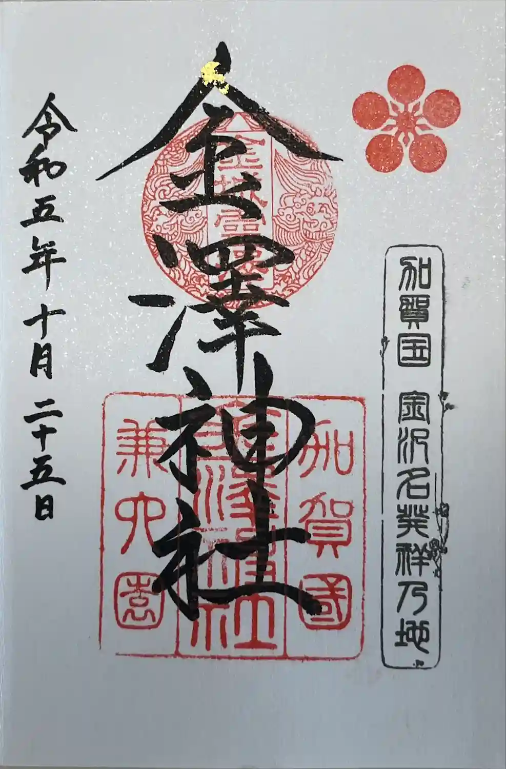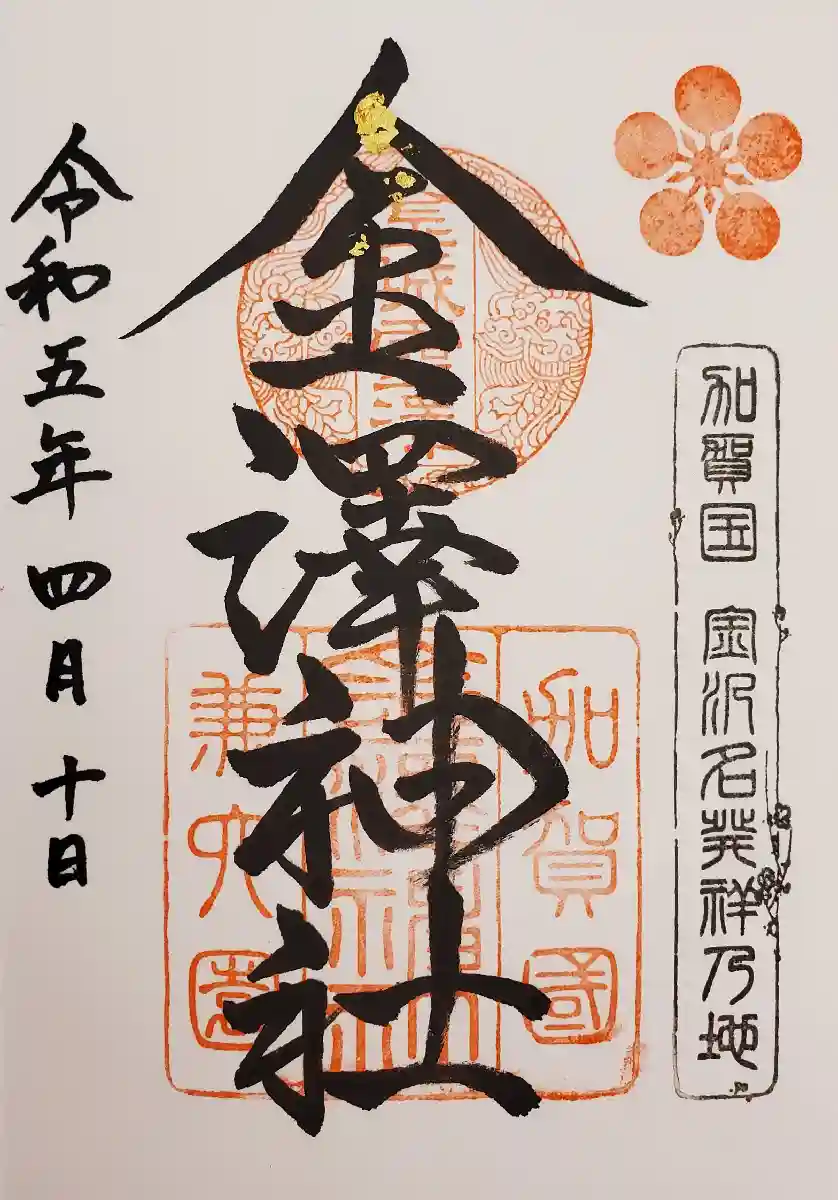 石川県名産の金箔があしらわれた御朱印。