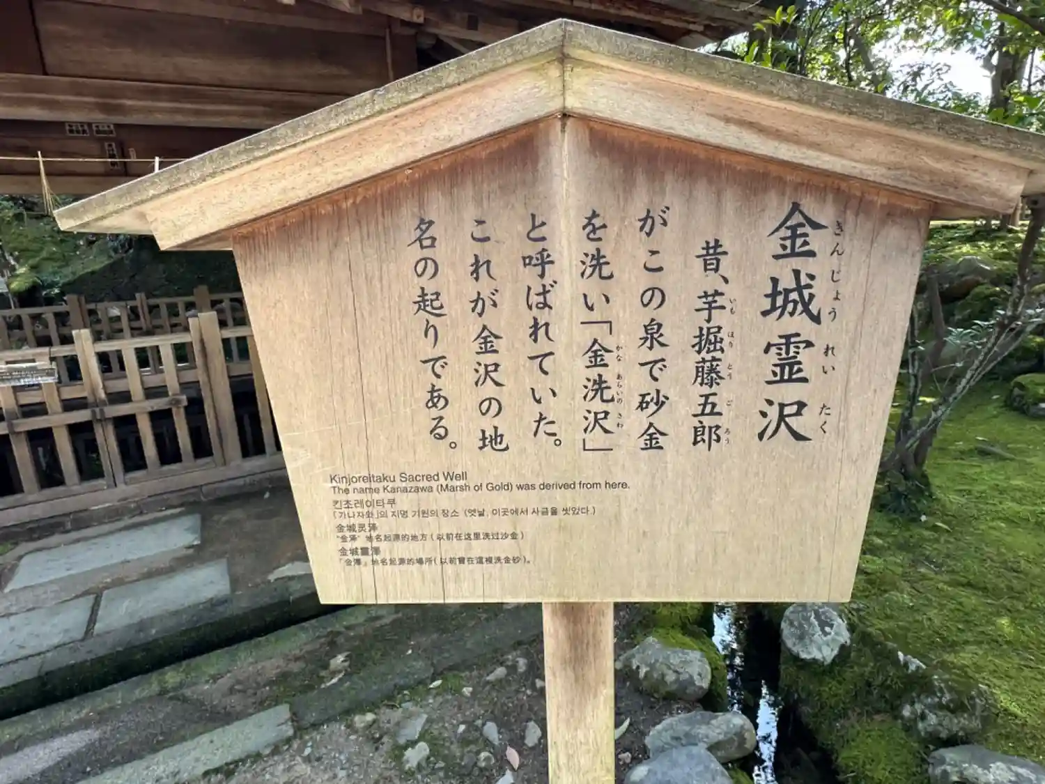 昔、芋掘藤五郎がこの泉で砂金を洗い「金洗沢」と呼ばれていた。これが金沢の地名の起りである。