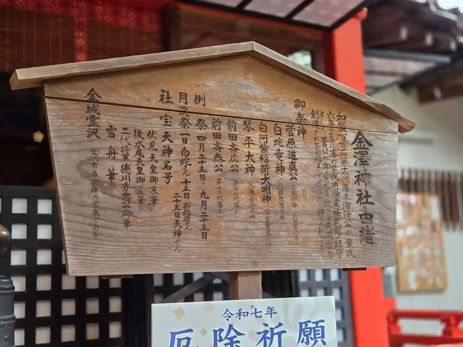 御祭神:菅原道真 白蛇竜神 琴平大神 前田斉広公 前田斉泰…