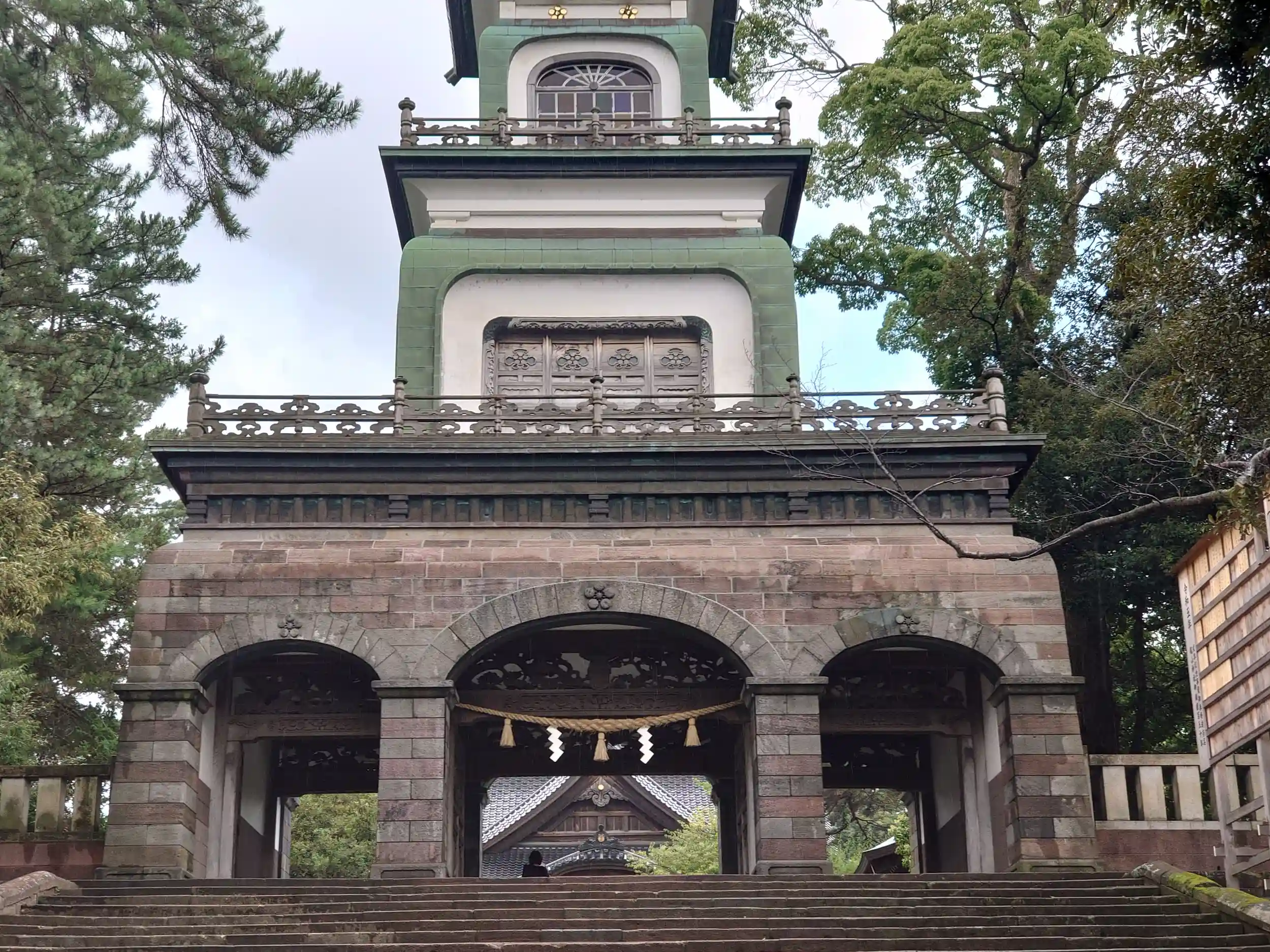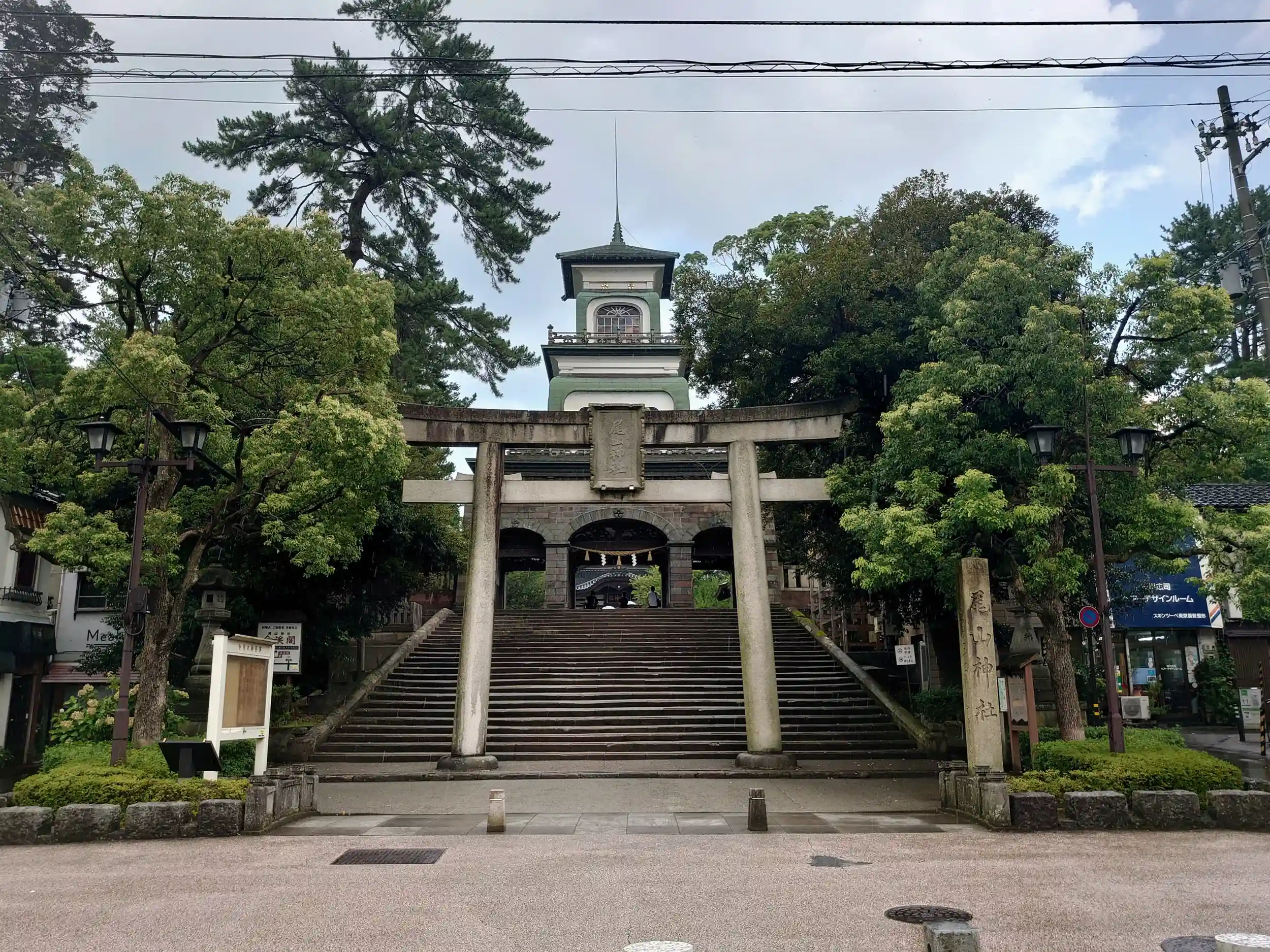 前田利家公とお松の方をお祀りされています、「神門」は特徴的で最上階にはめ込まれたギヤマンが綺麗です。日本現存最古の避雷針があるそうです、ここからも金沢城へ鼠多門橋は行けます 参拝記録