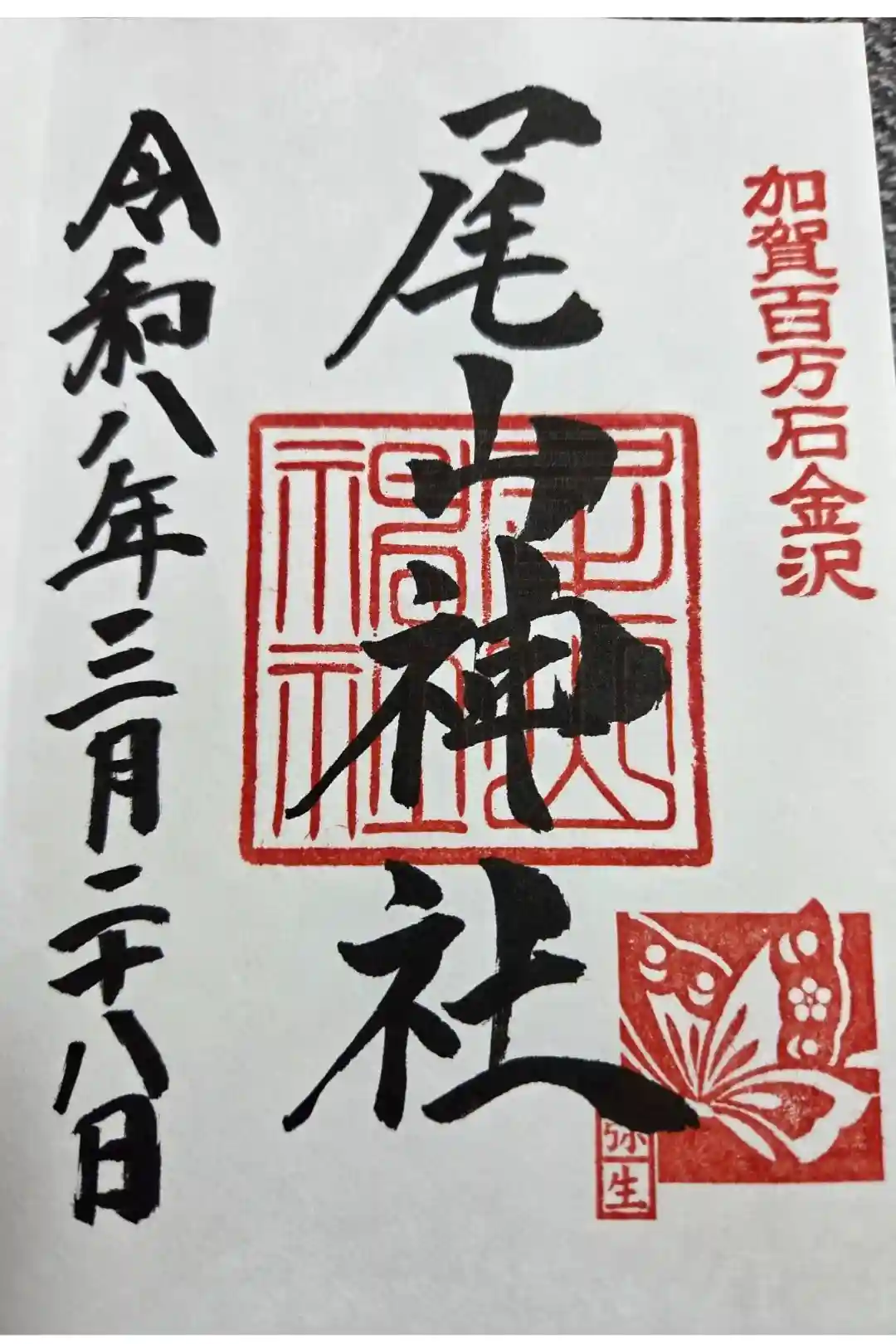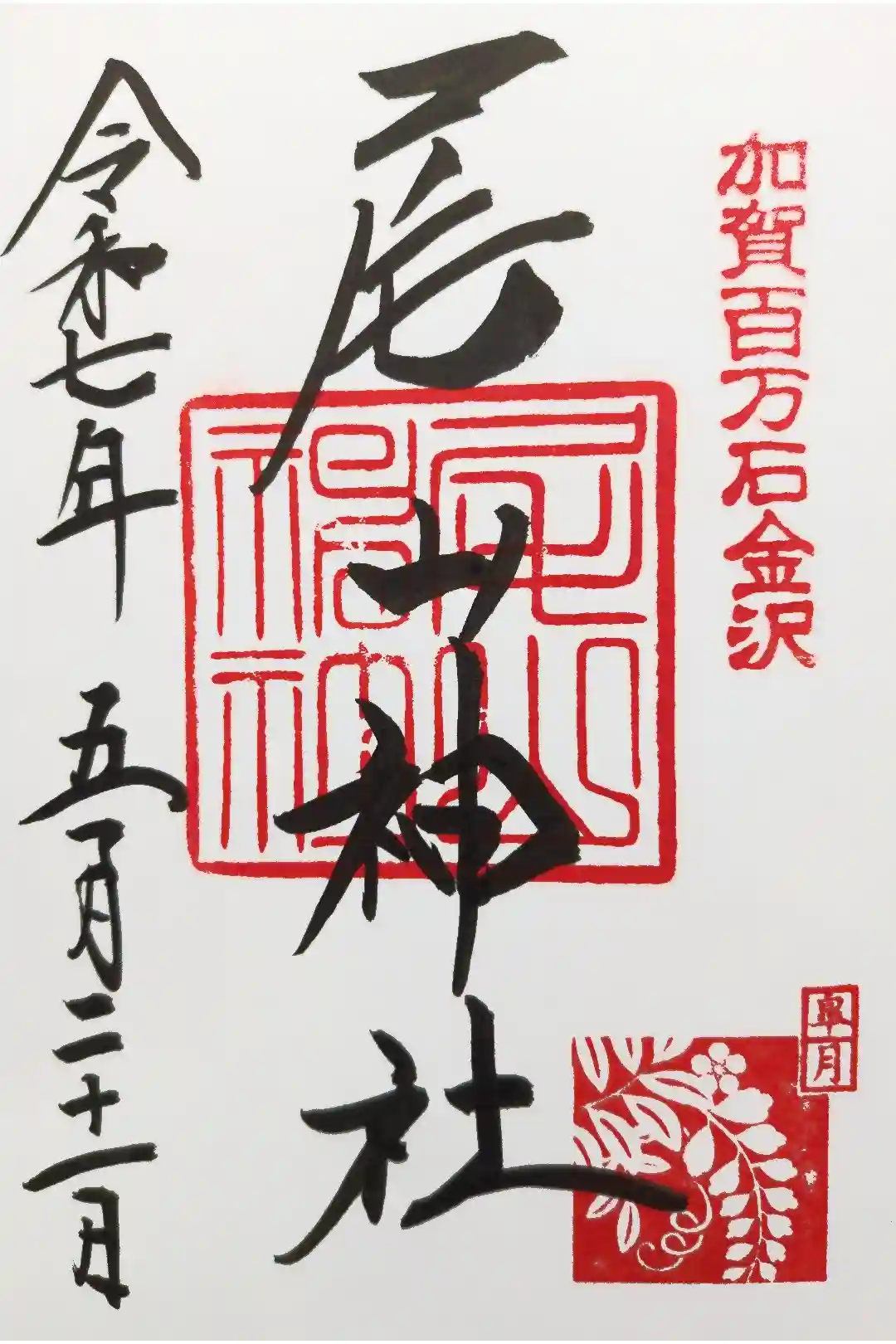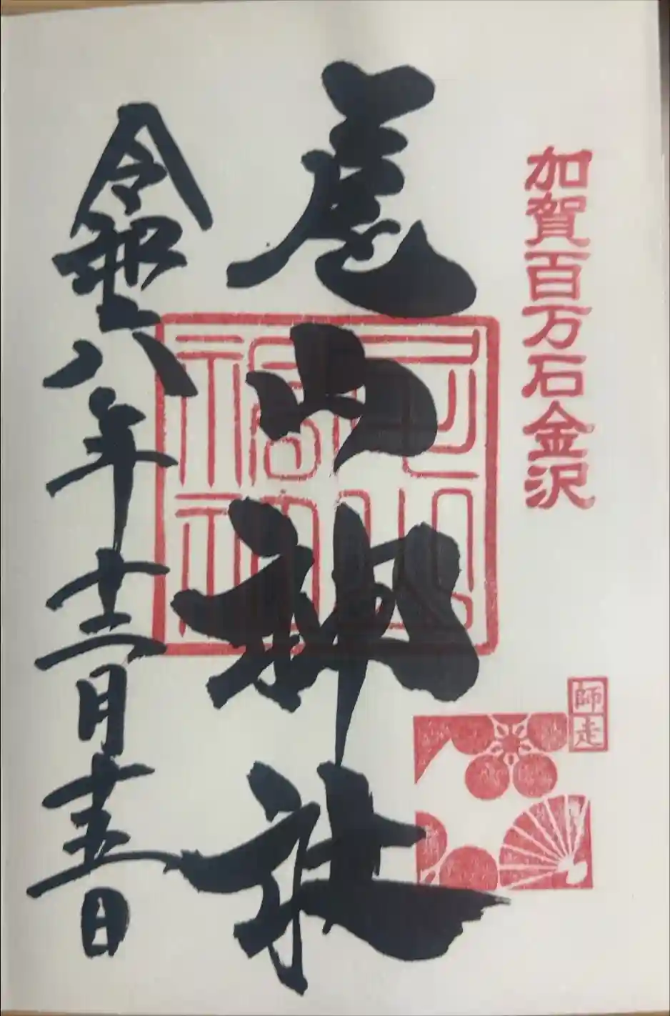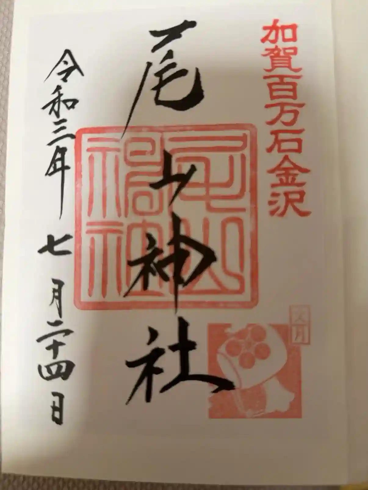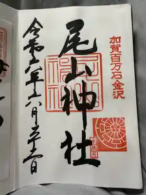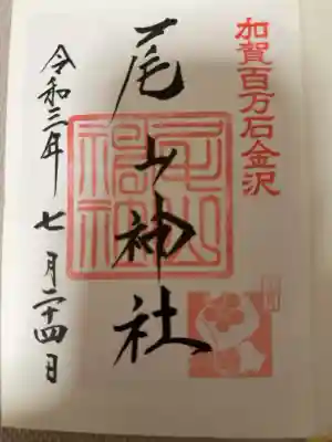 神社印に重ねて「尾山神社」と墨書きされています。