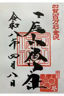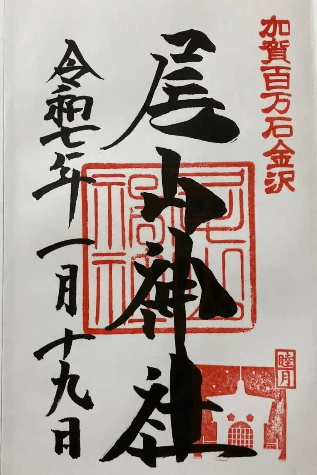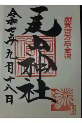 右上に「加賀百万石金沢」の印、真ん中に神社印が押されています。