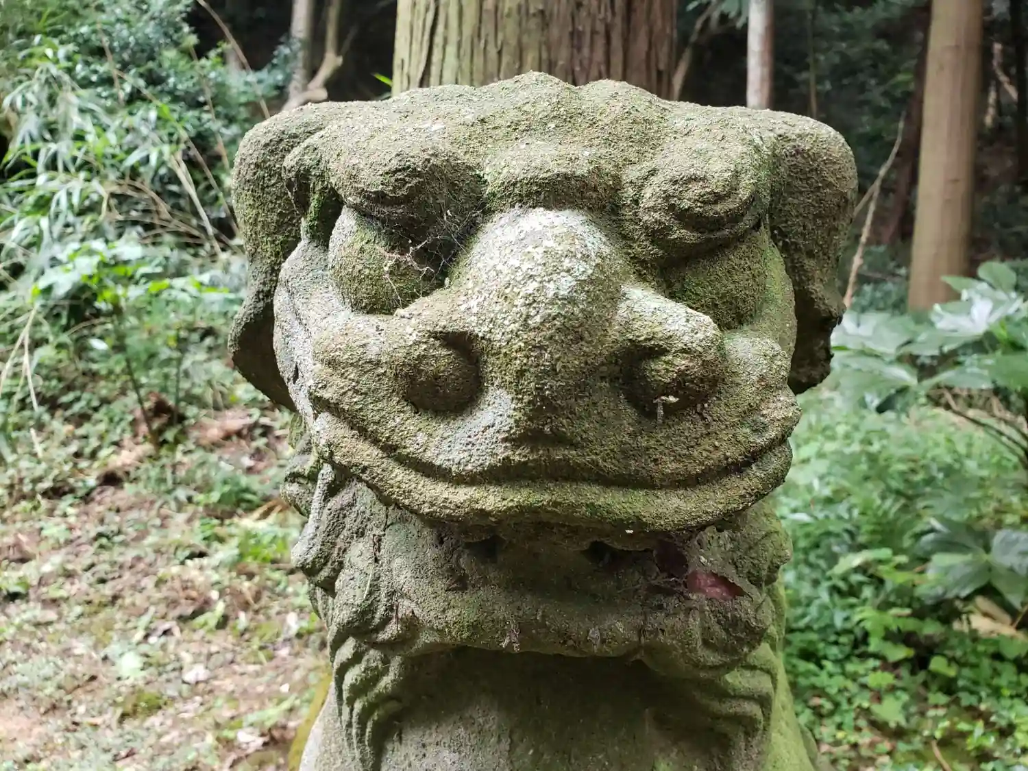 山の中の階段を上りきったところに神社があります。一人で行ったのですが、少し心細くなりました。苔に覆…