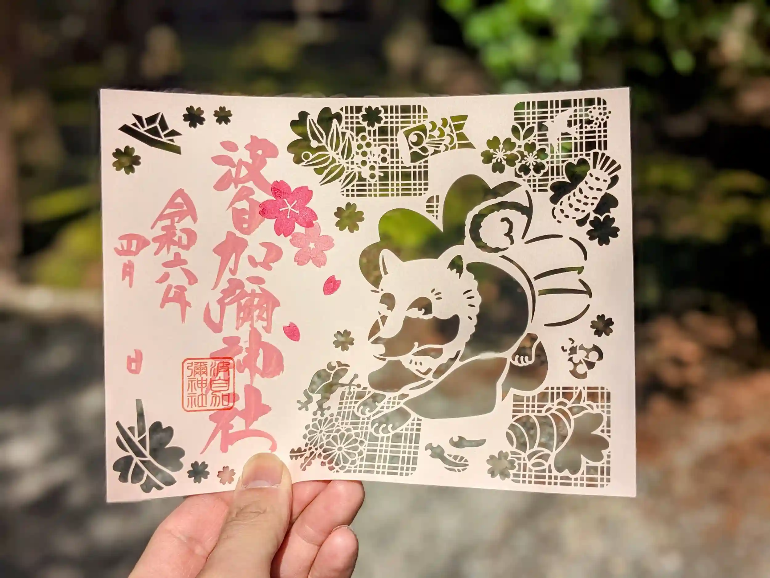天気も良かったので4月スタートの切り絵御朱印を撮影してみました。