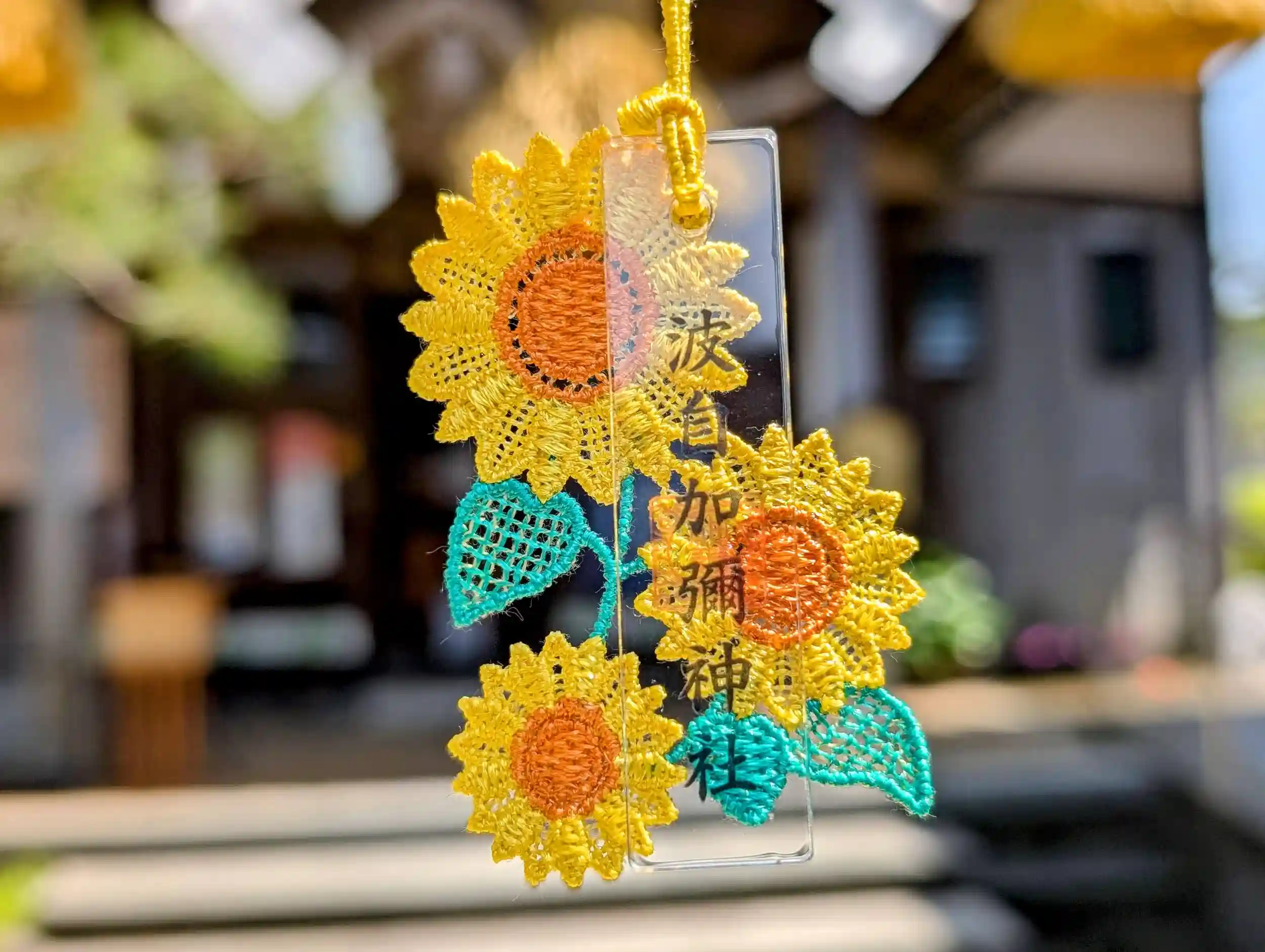 季節を彩る花や葉のレースをあしらったお守りです。