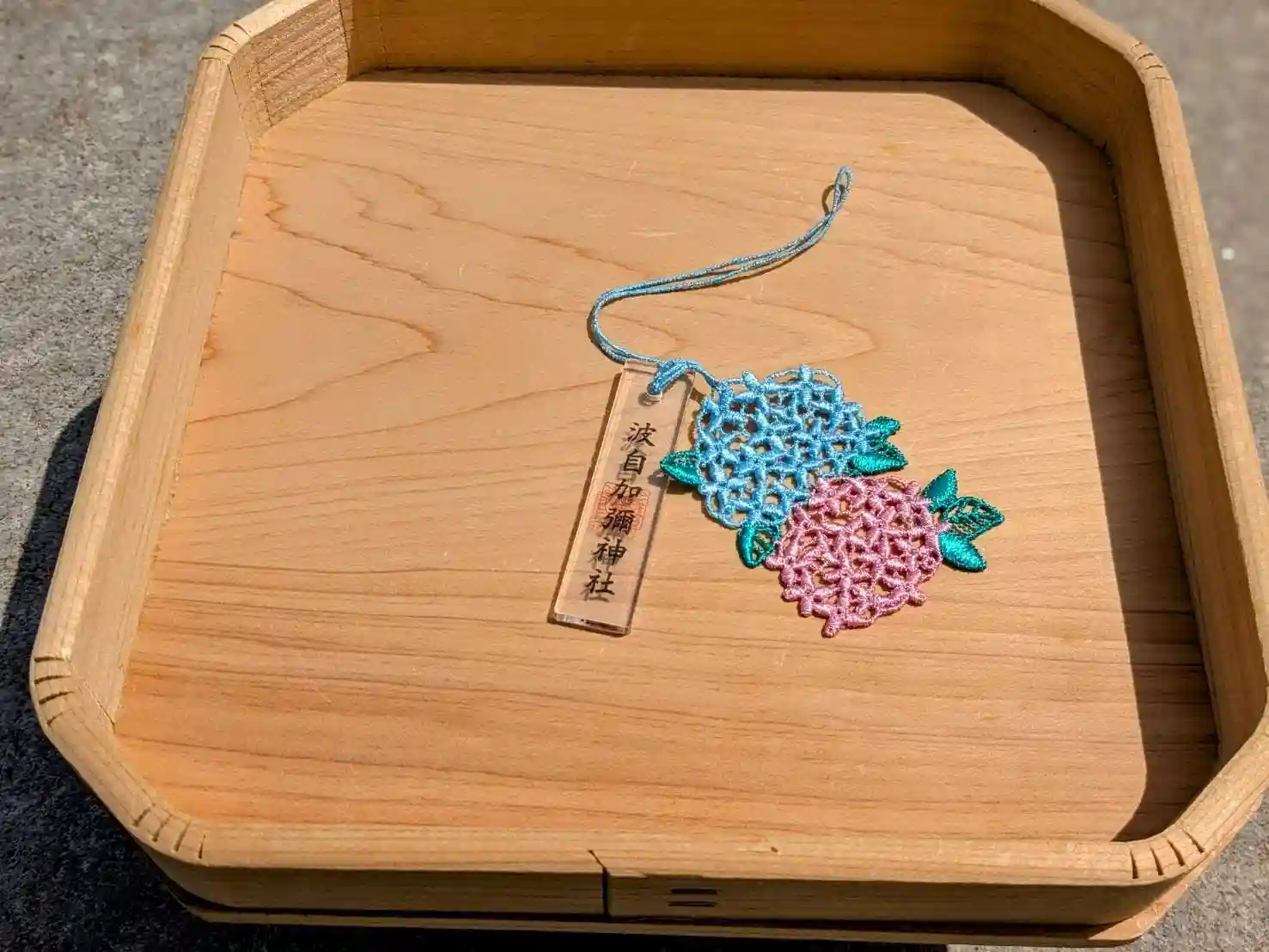季節を彩る花や葉のレースをあしらったお守りです。