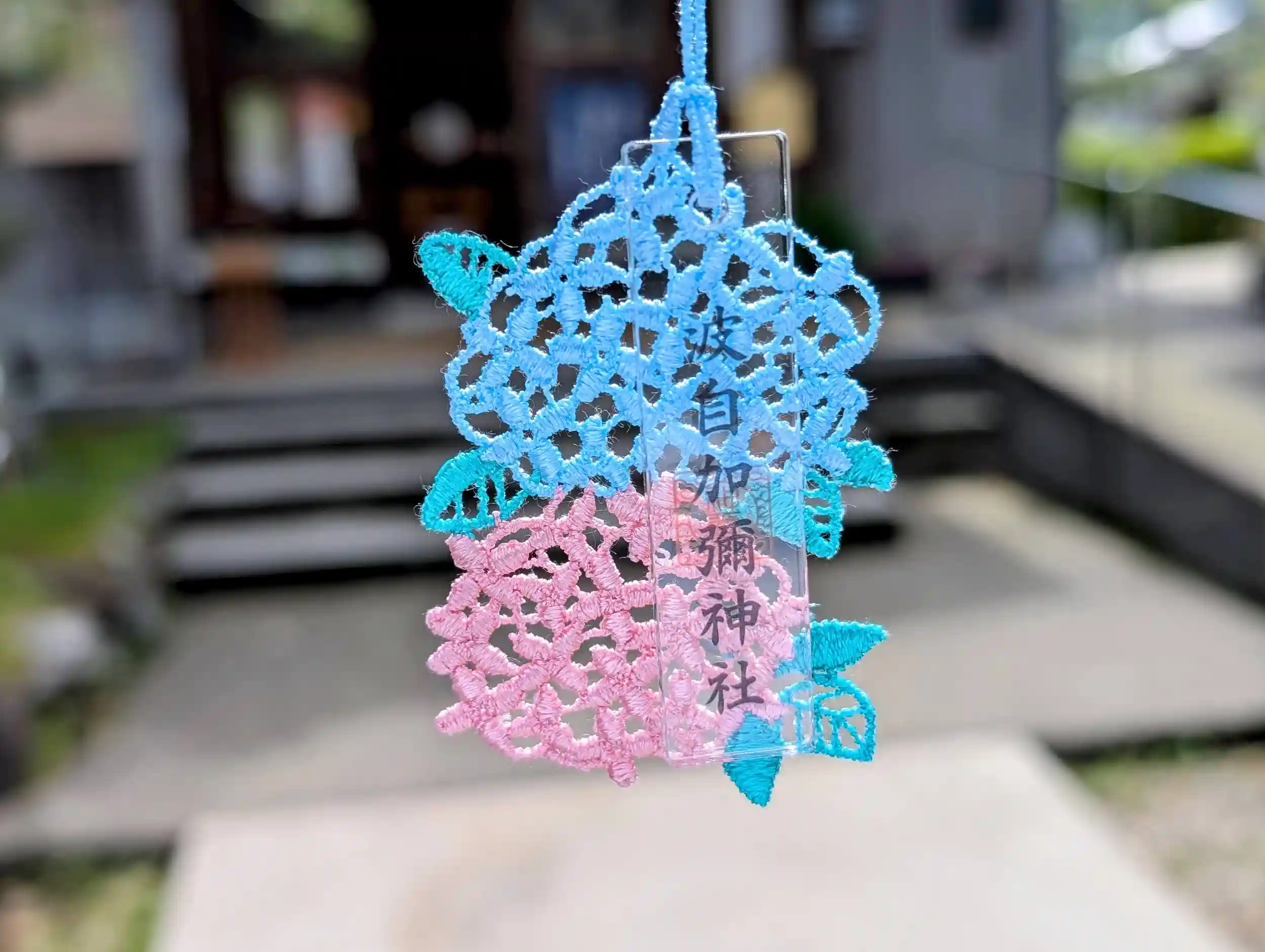 季節を彩る花や葉のレースをあしらったお守りです。