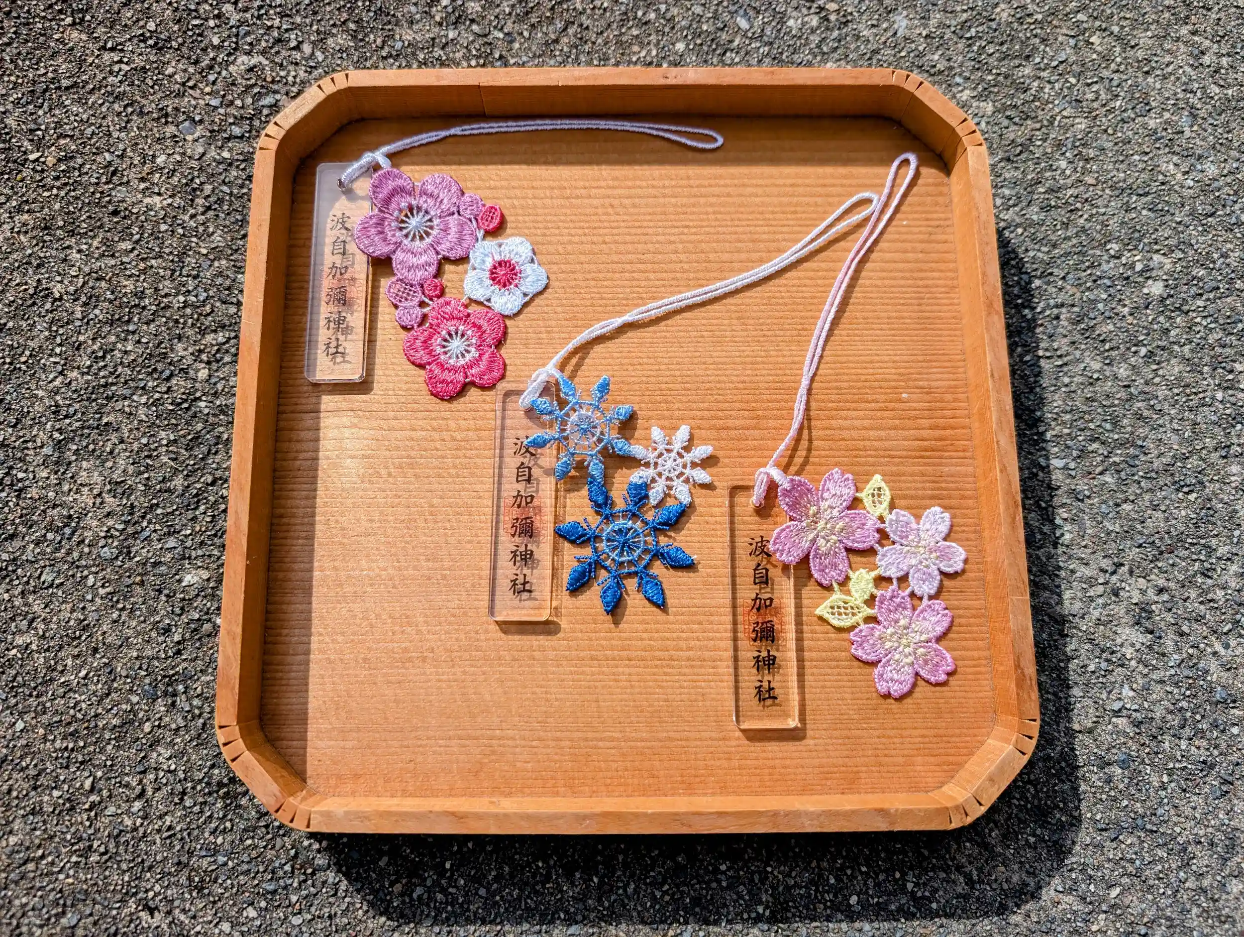 先を見通せるよう願いを込め、透明な素材に季節を彩るレースをあしらったお守りです。