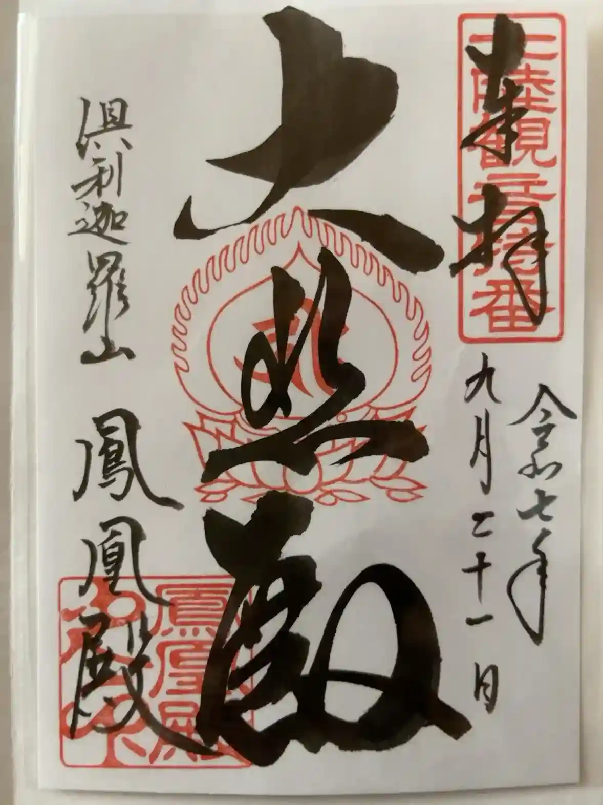 倶利伽羅不動寺鳳凰殿さんの御朱印です。