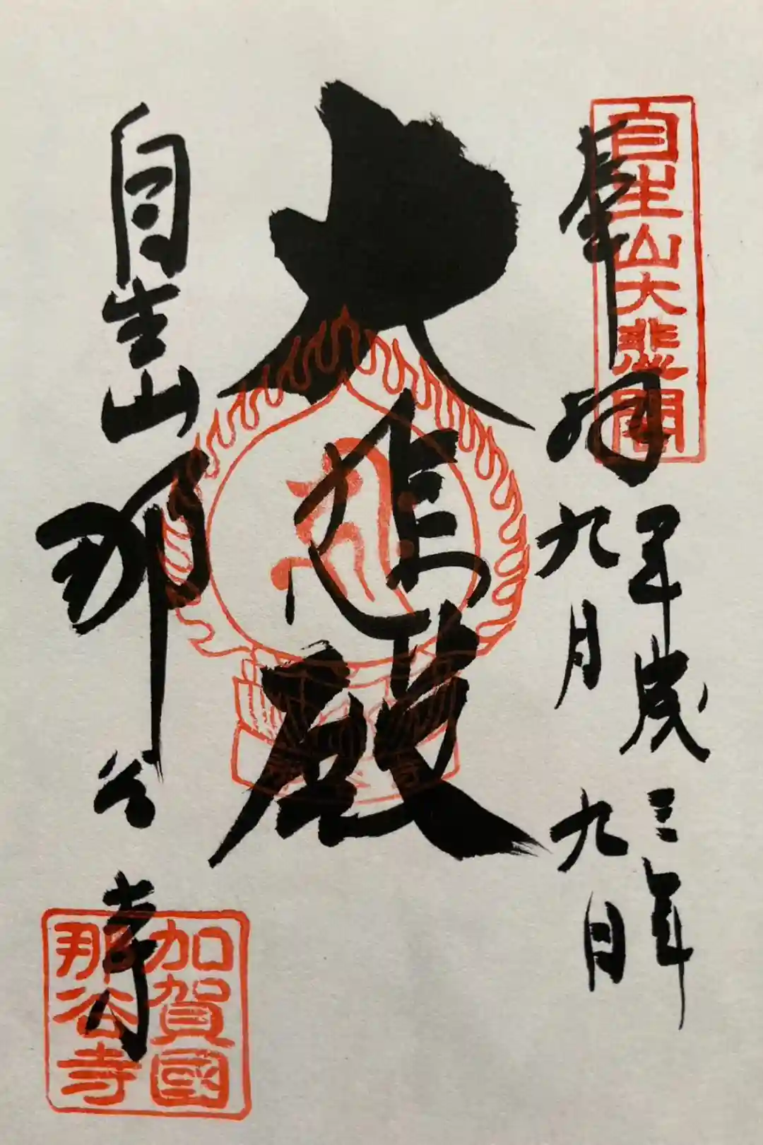 御朱印(2種類)大悲殿の御朱印千手観音の御朱印限定御朱印(1種類)季節限定特別御朱印(11月)御朱印帳(2種類)山門の御朱印帳(ピンク色)山門の御朱印帳(紺色)那谷寺開創一千三百年記念御朱印帳授与場所・時間過去の限定御朱印季節限定特別御朱印(8月)最新の御朱印・御朱印帳の投稿