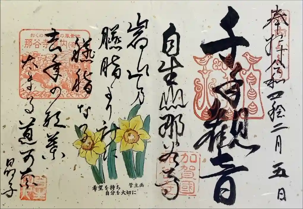 那谷寺管主自らが心を込めて揮毫した季節限定特別御朱印です。