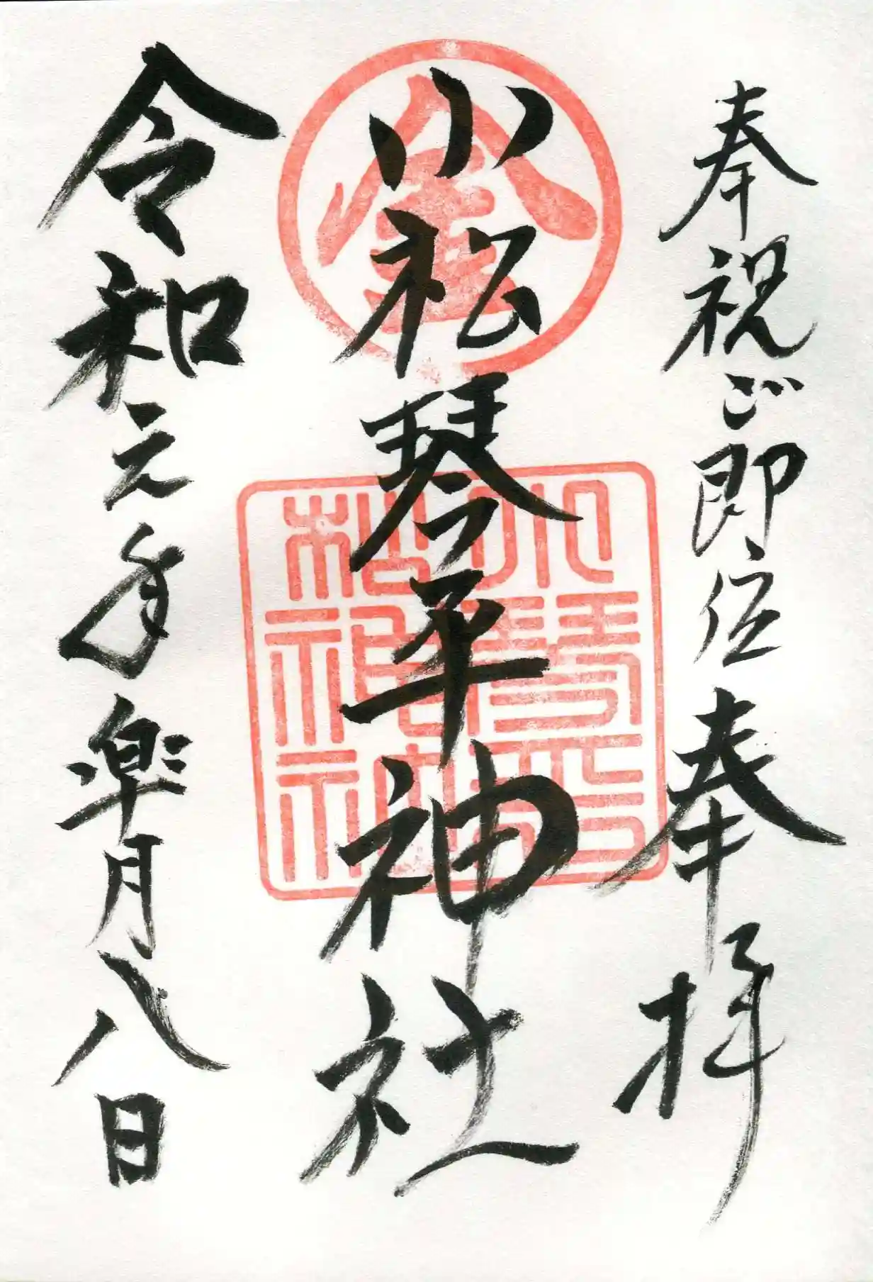 境内の前の道路を挟んで向かい側に鎮座する琴平神社の御朱印もいただきました。