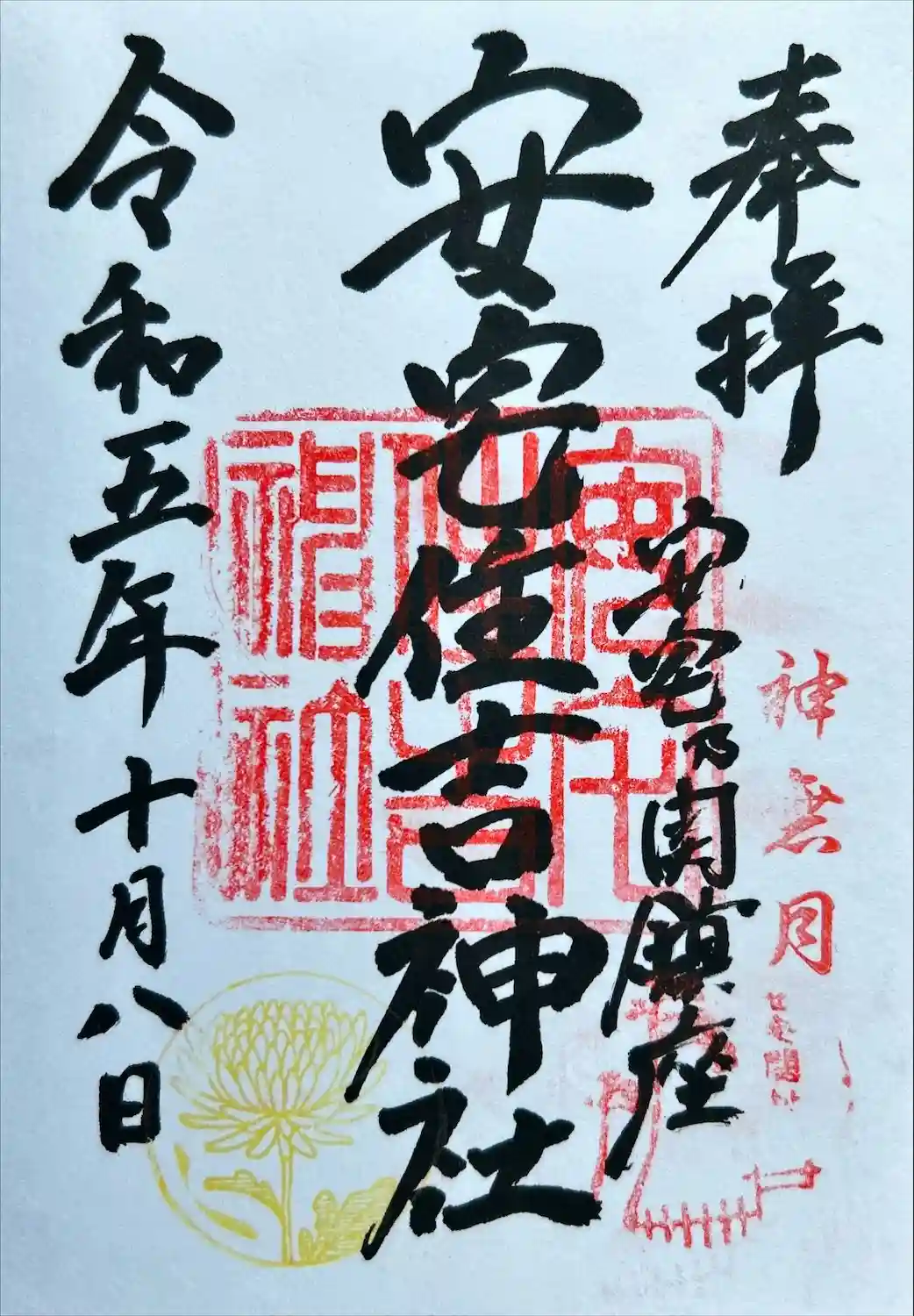 平成30年(2018)11月、小松市の安宅住吉神社にて御朱印⛩️