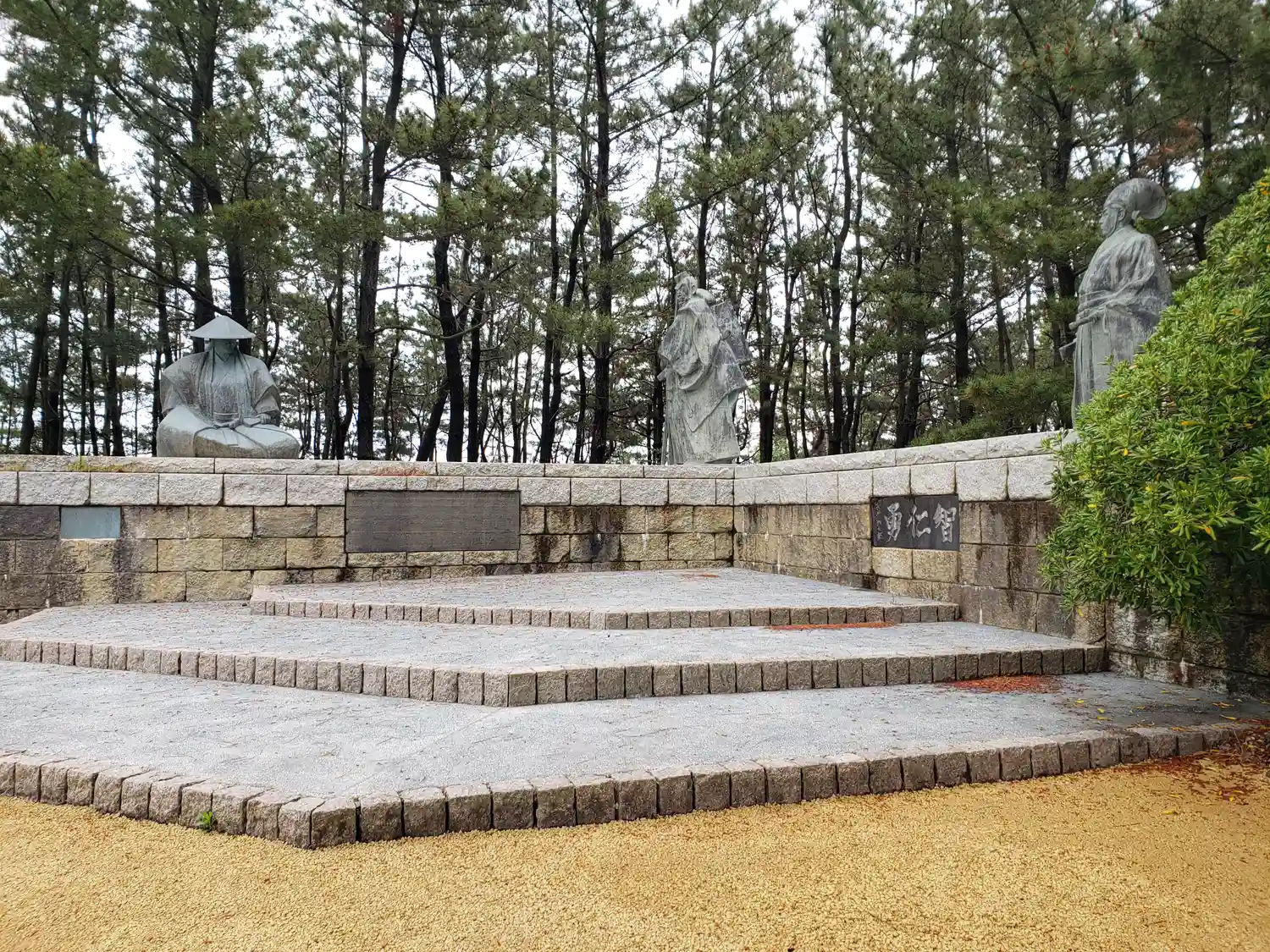 海は大時化で天気も悪かったので、神社のことや近くに銅像がある…