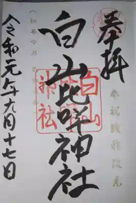 ![白山比咩神社の御朱印]()