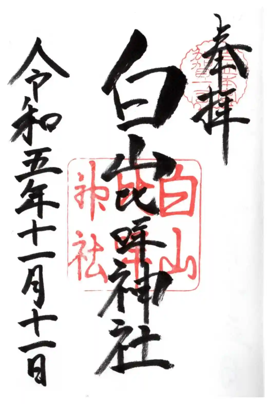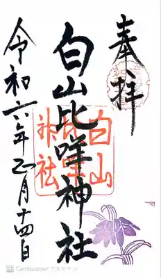 白山比咩神社の御朱印 写真一覧
