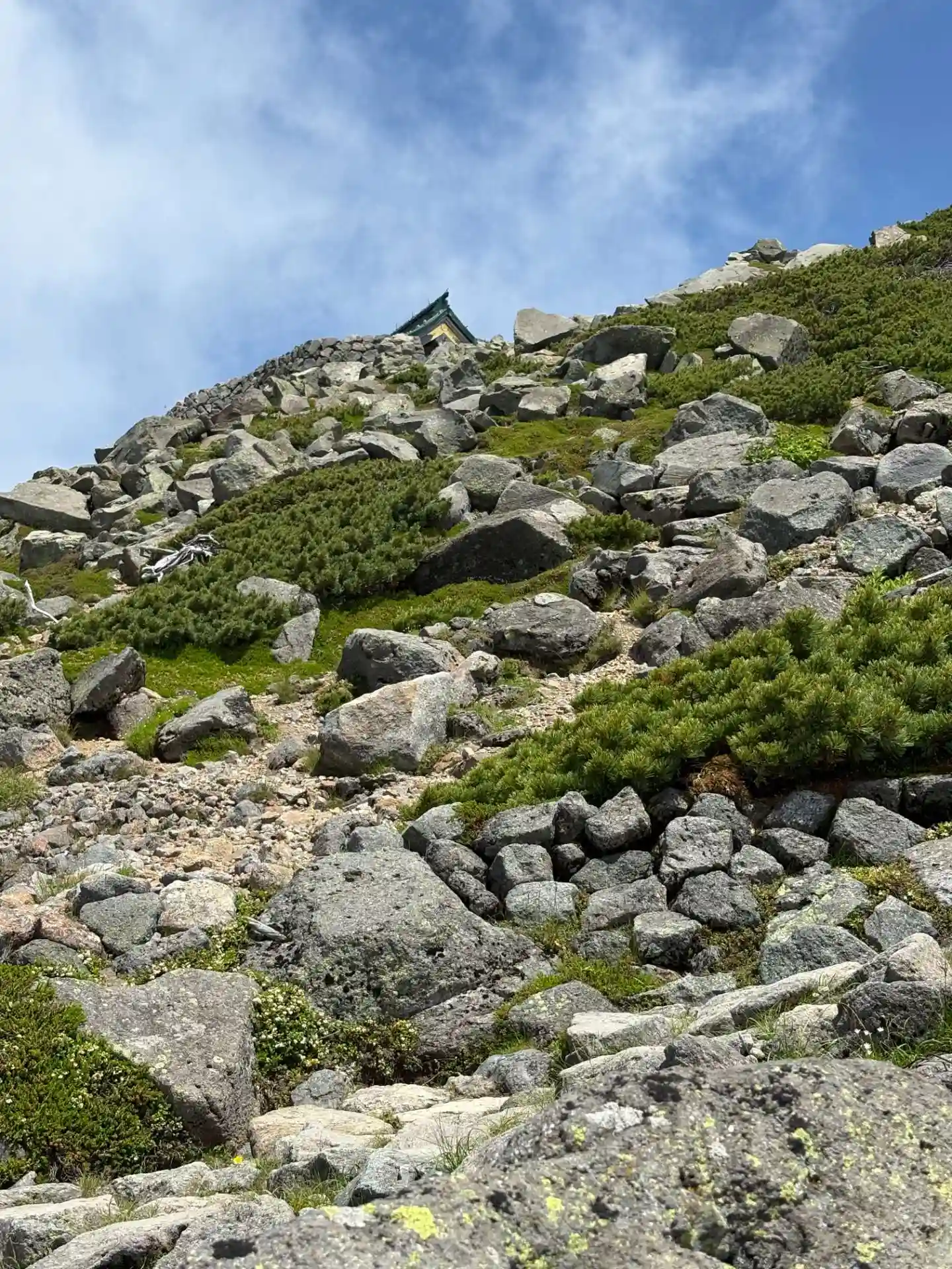 ここでニッコウキスゲに出会い少し元気が出ました。花を見るなら観光新道の方が良いように思いました。ただ、このコースは沢がないので、タオル濡らして頭冷やしたかったのができず苦しみました😓