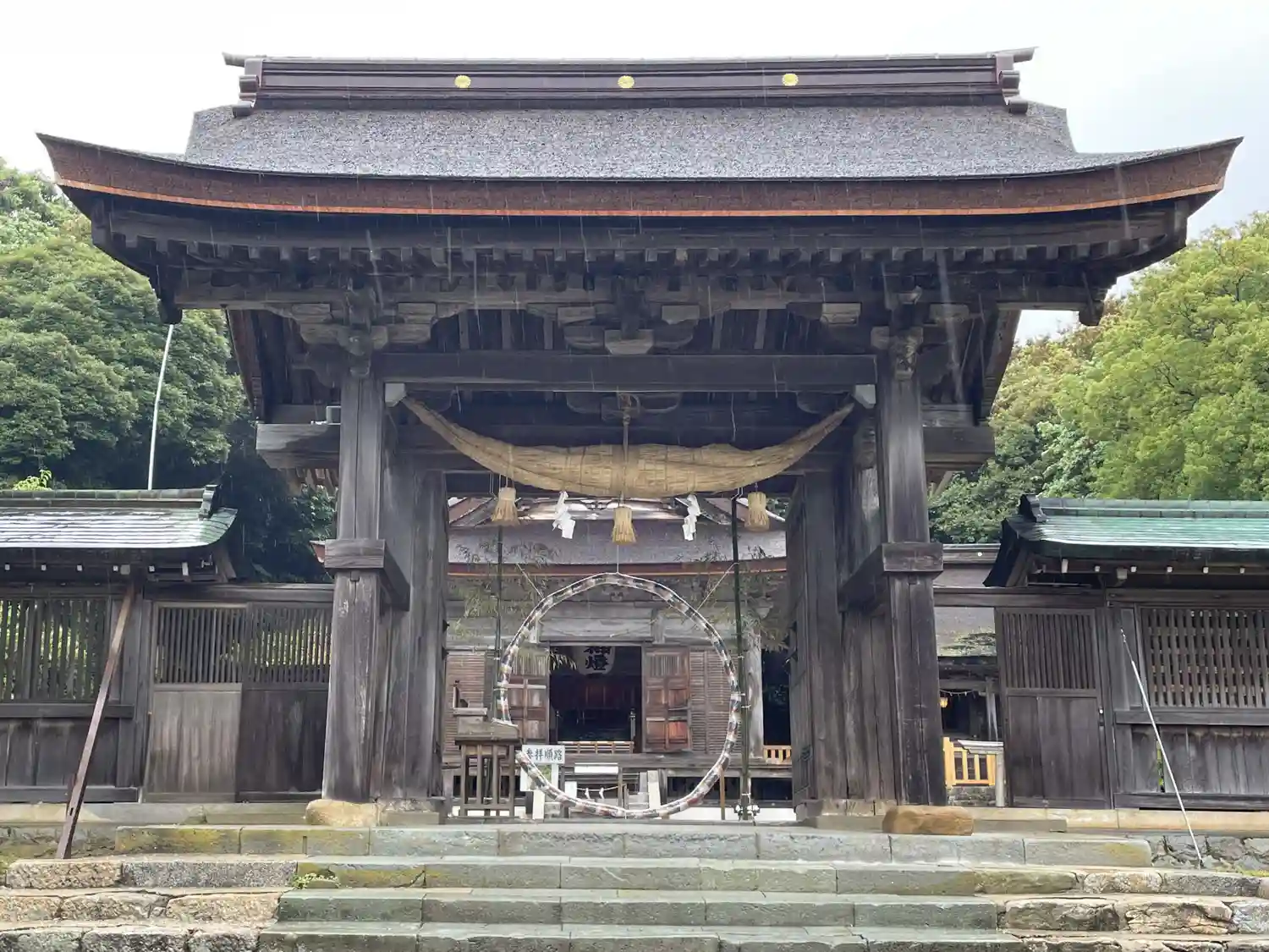 神門の中に茅の輪が見えます