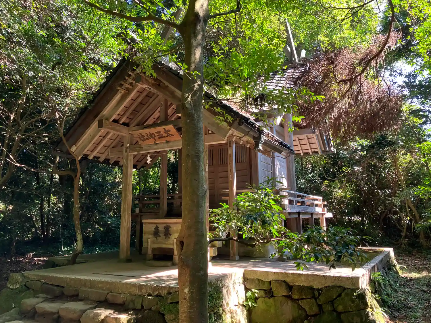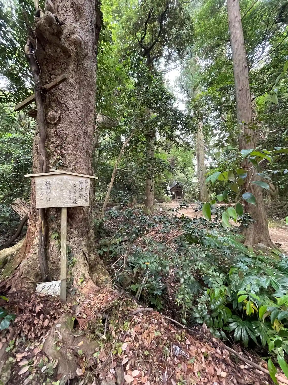 社殿の背後に広がる「入らずの森」