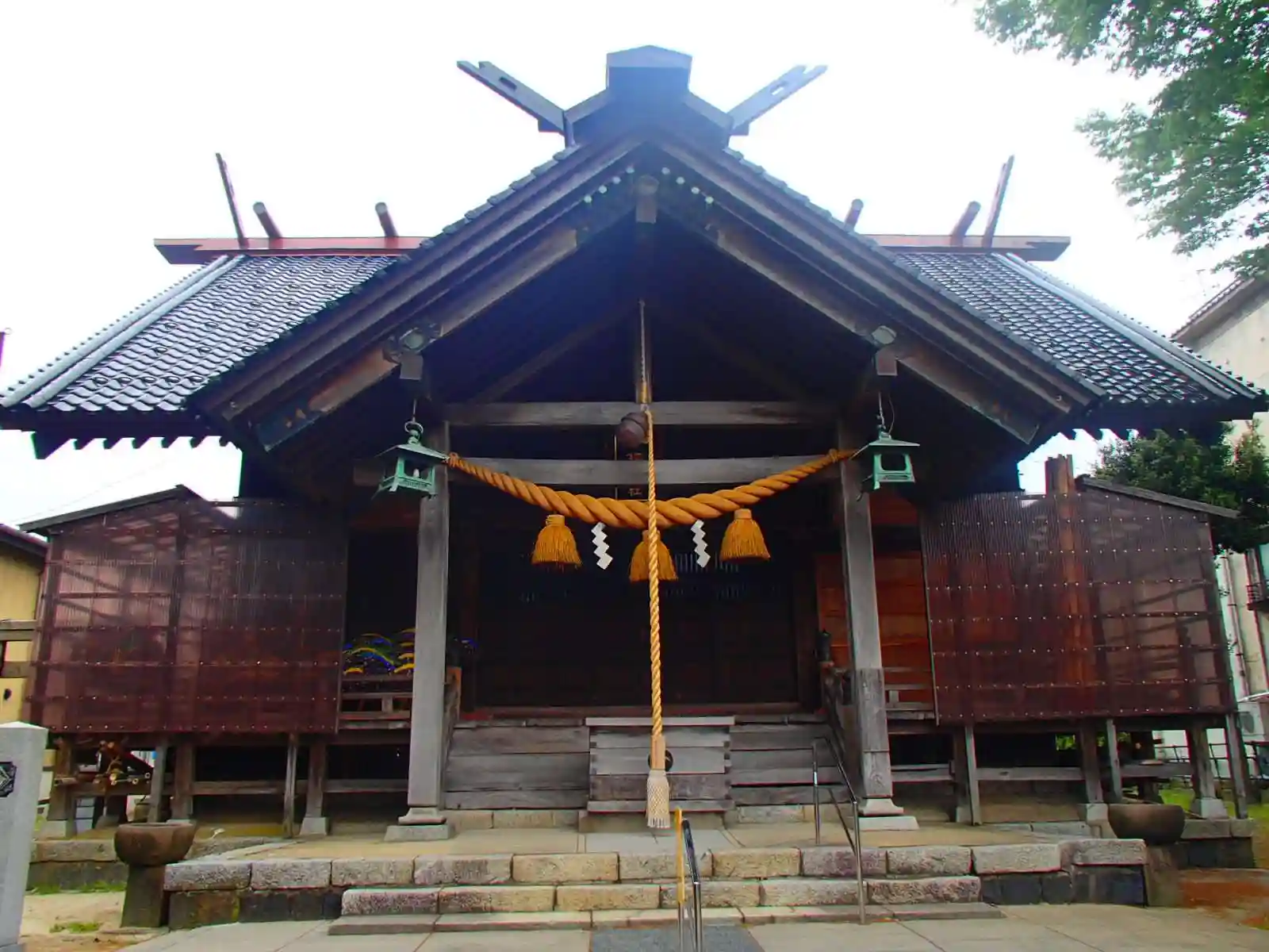 <境内社>拝殿の西側にある西宮神社。向こう側に道の駅能登食祭市場が見えます。