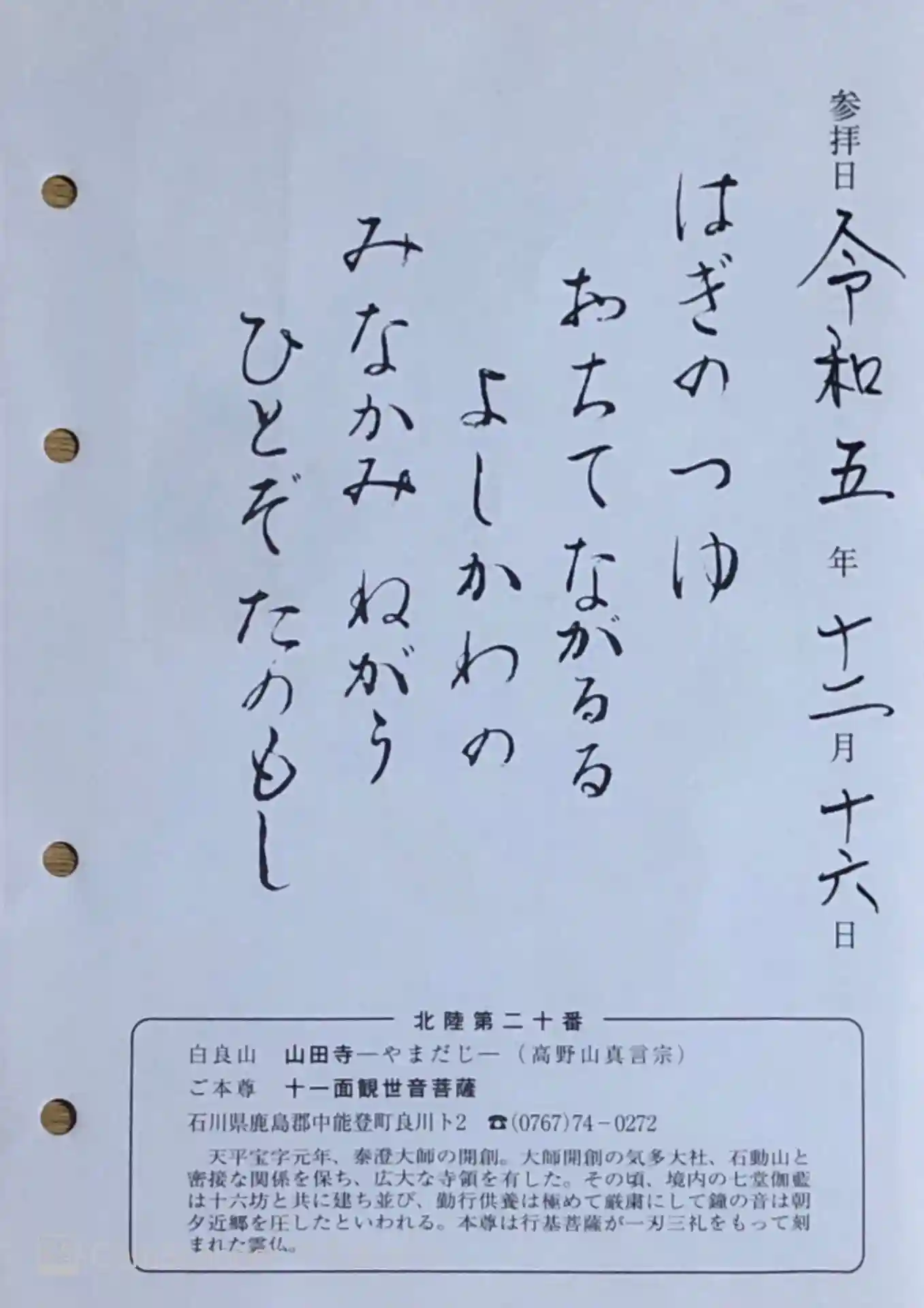 能登国三十三観音霊場 第20番札所