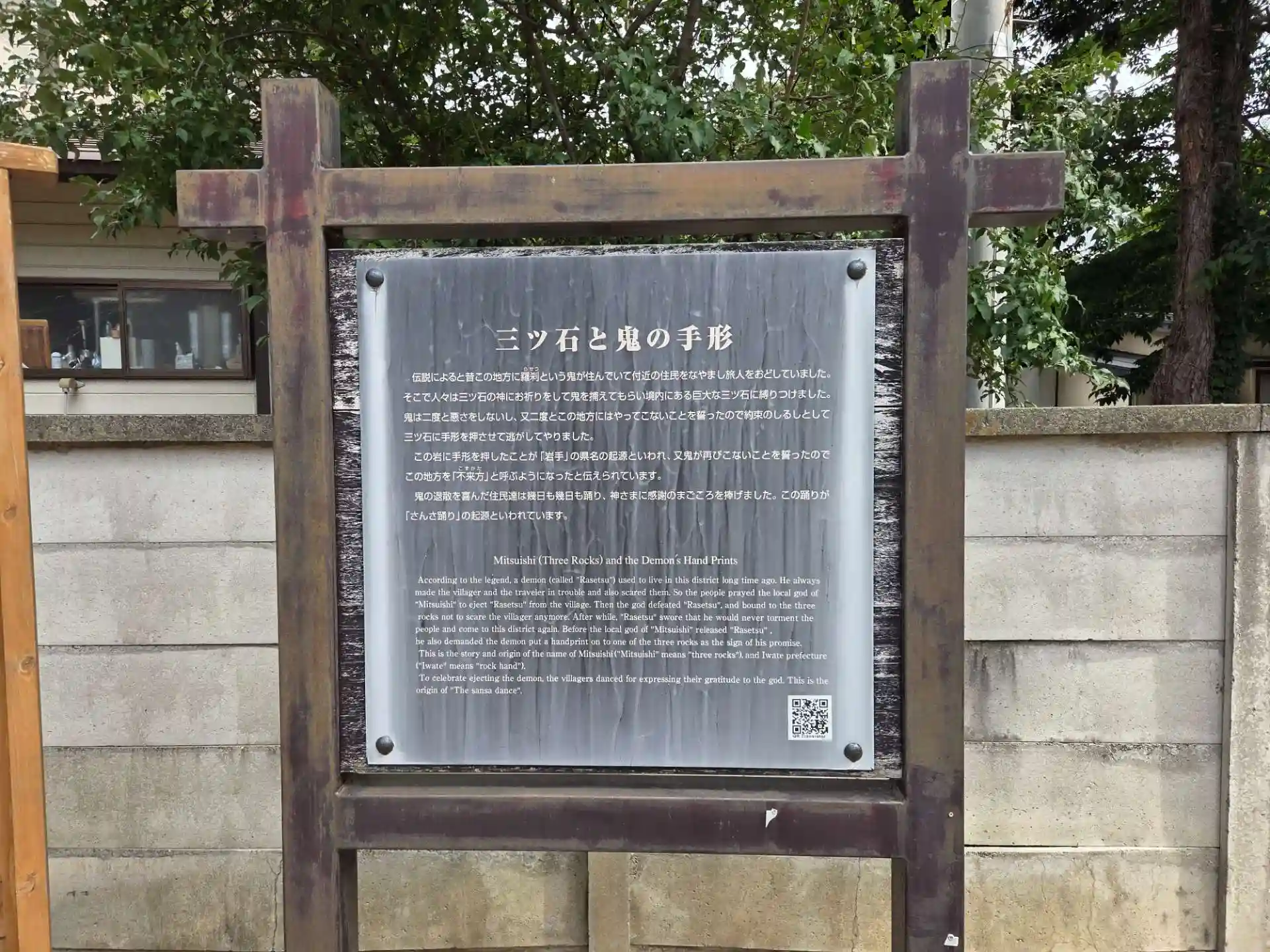 神社自体は何て事の無い特徴の無い神社ですが、鬼の手形は「岩手」の名前の由来で、喜んで踊ったのが、丁度参拝時に行われているさんさ踊りの発祥だそうです。