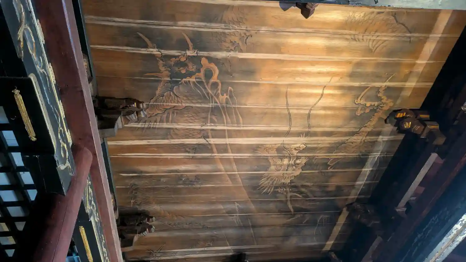 報恩寺山門(楼門)は昭和53年(1978)に建てられた三間一戸、入母屋、桟瓦葺、八脚楼門で、2階の楼閣には花頭窓、高欄が設けられ十一面観音や秋葉三尺坊、倶利伽羅不動が安置されています。中門は盛岡城の城門だったとされ、明治時代に入り盛岡城が廃城になると払い下げが行われ報恩寺の山門として移築されたものと伝えられています。