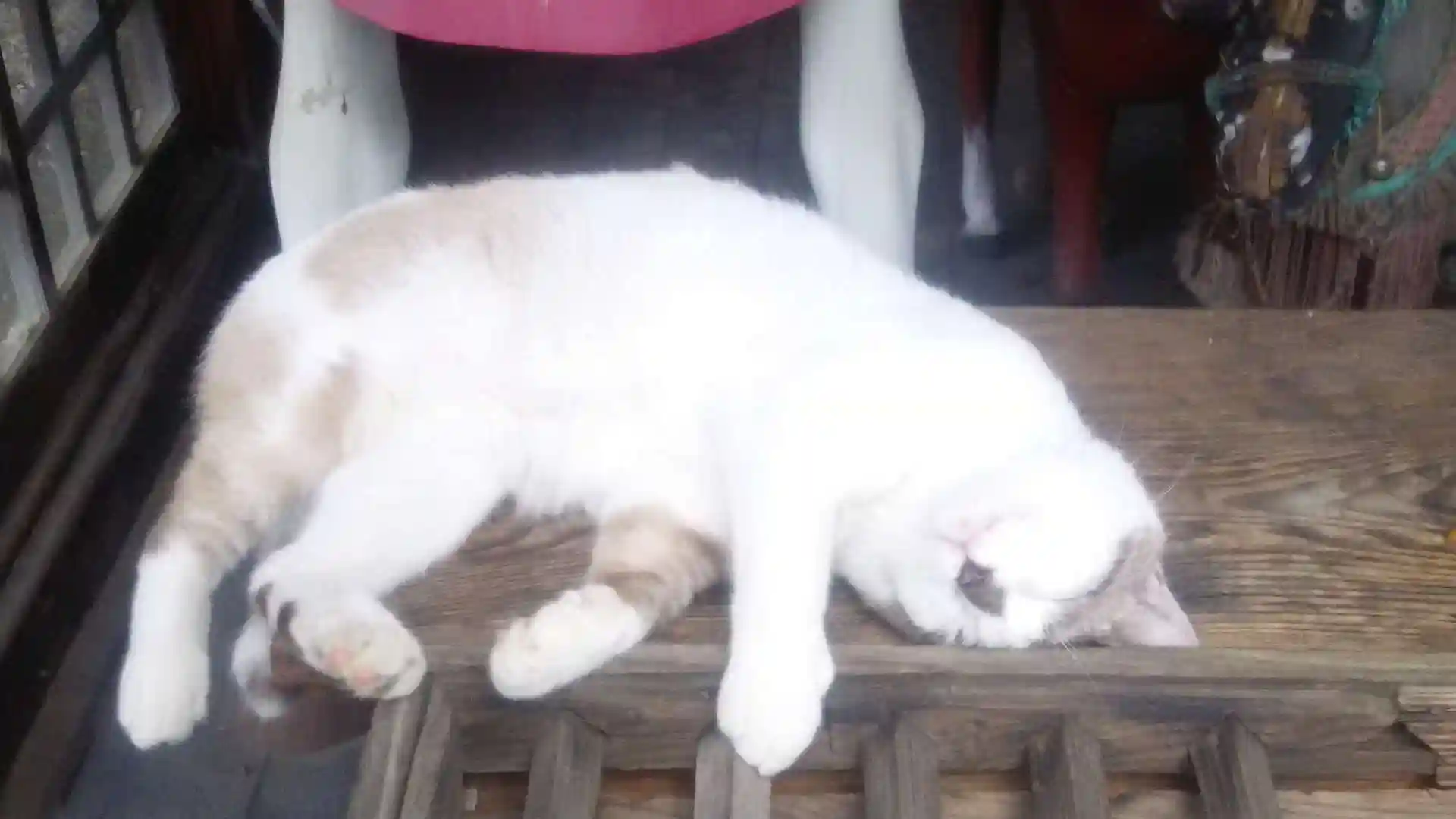 賽銭箱で猫爆眠中。
