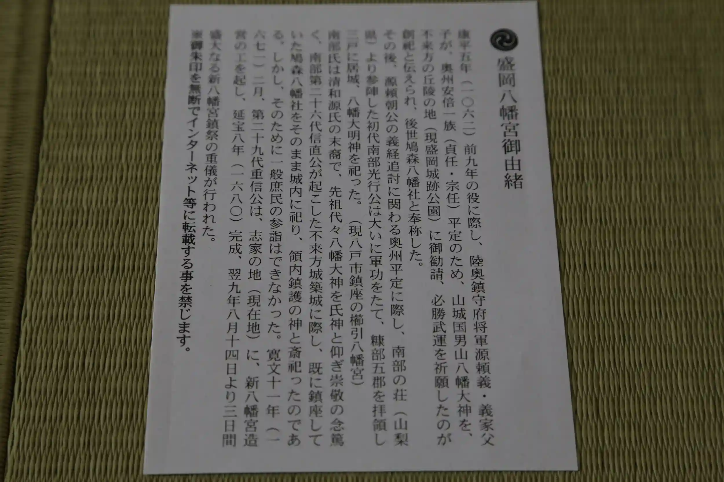 御朱印をインターネット等に転載することを禁止する旨の記載がある。