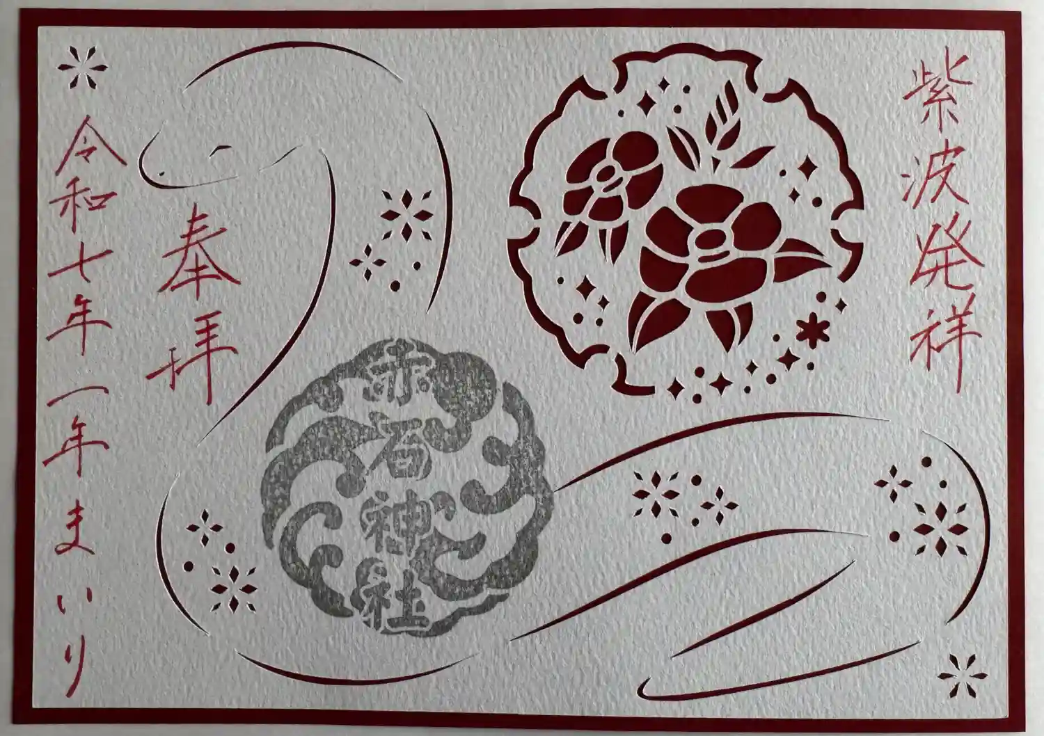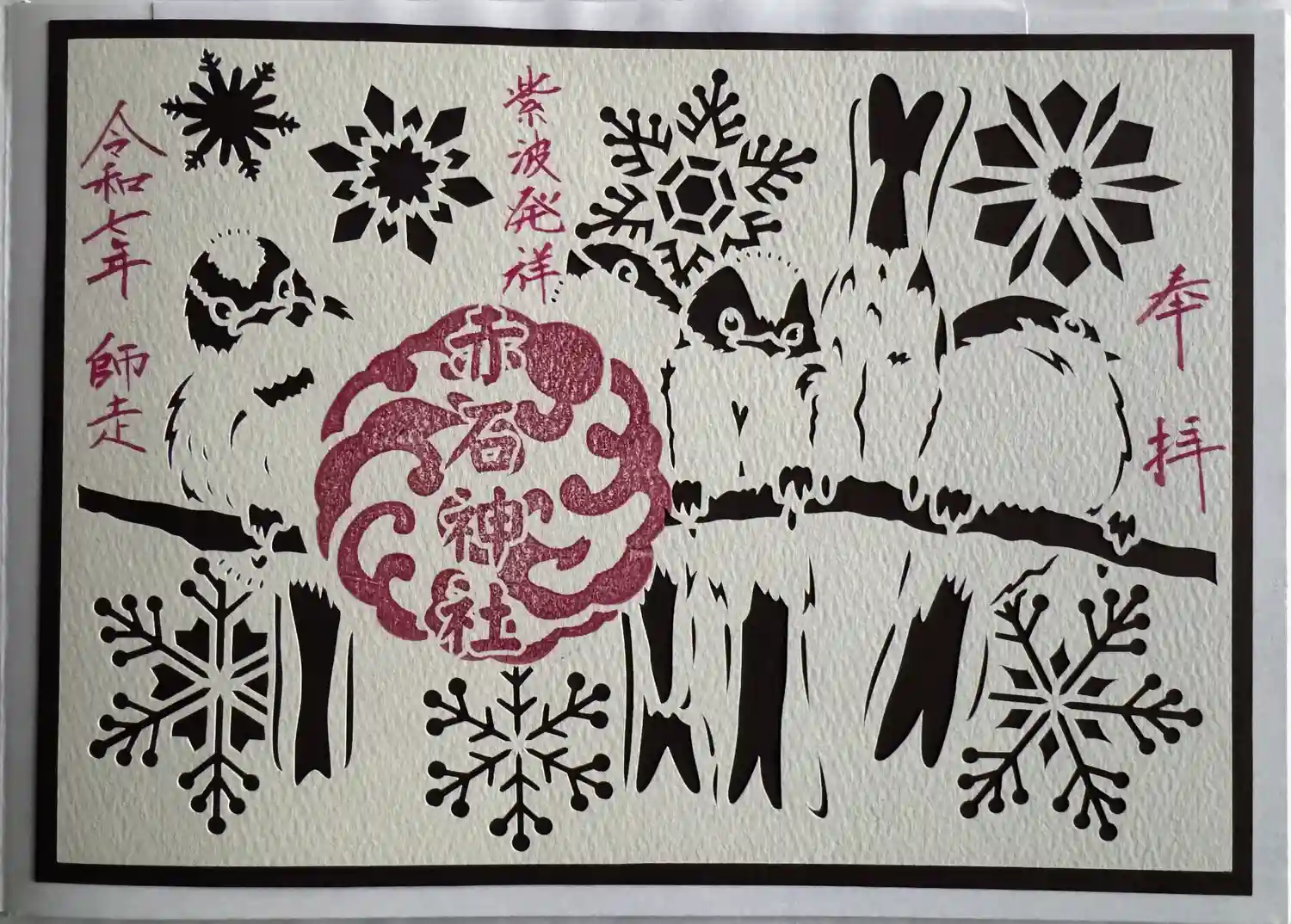 飾り印、切り絵のデザインは神社の職員により奉製しております。 書き入れ、貼り付けも承ります。